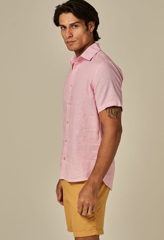 Camisa Linho Slim Manga Curta Ant Rosa Giz