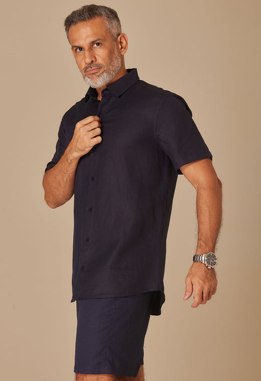 Camisa Linho Slim Manga Curta Índigo