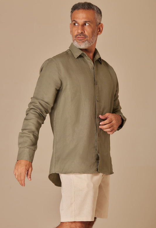 Camisa Linho Slim Manga Longa Army Green