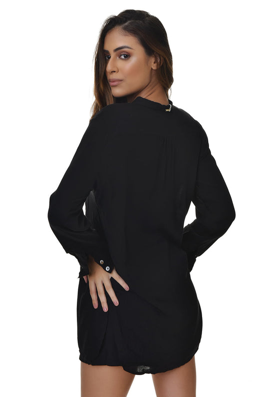 Seleção de camisas femininas na cor preta, versáteis para diversas ocasiões. Tecidos confortáveis e cortes modernos que valorizam o visual casual e elegante, perfeitas para compor looks do dia a dia com estilo e praticidade.