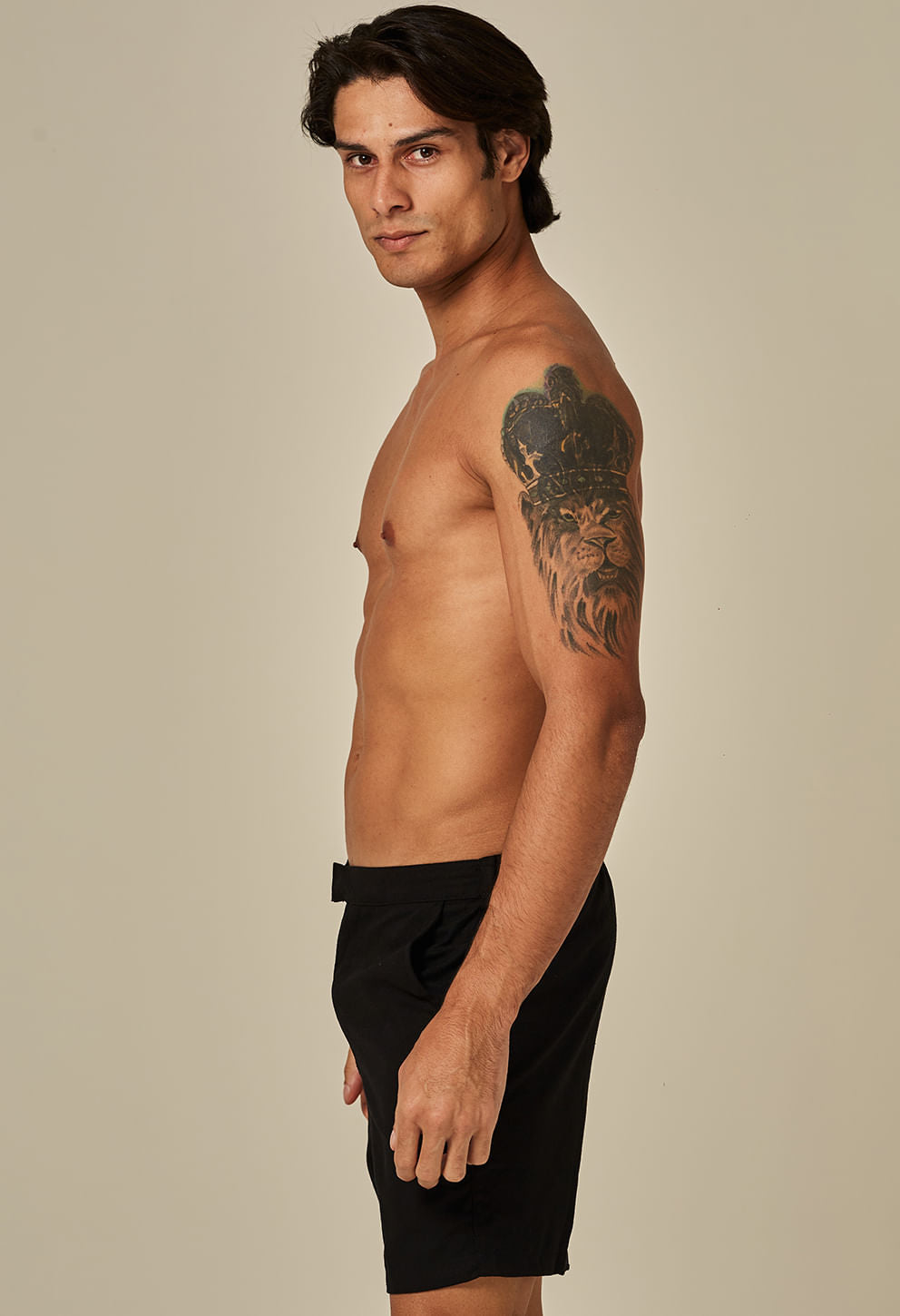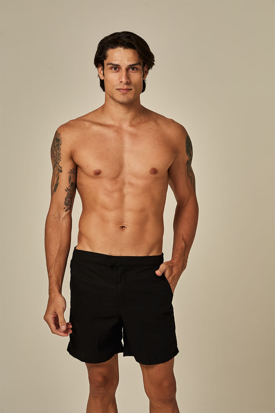 +Bermuda alfaiataria preta em tecido leve, com modelagem tradicional e cós elástico que une conforto e estilo para o uso casual do dia a dia.