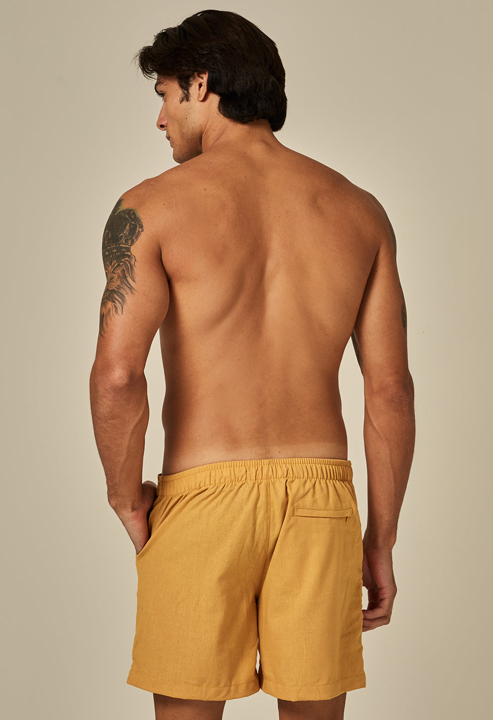 +Bermuda alfaiataria em tom mostarda, confeccionada em algodão para máximo conforto. Design clean, cintura com passantes e caimento versátil, ideal pra