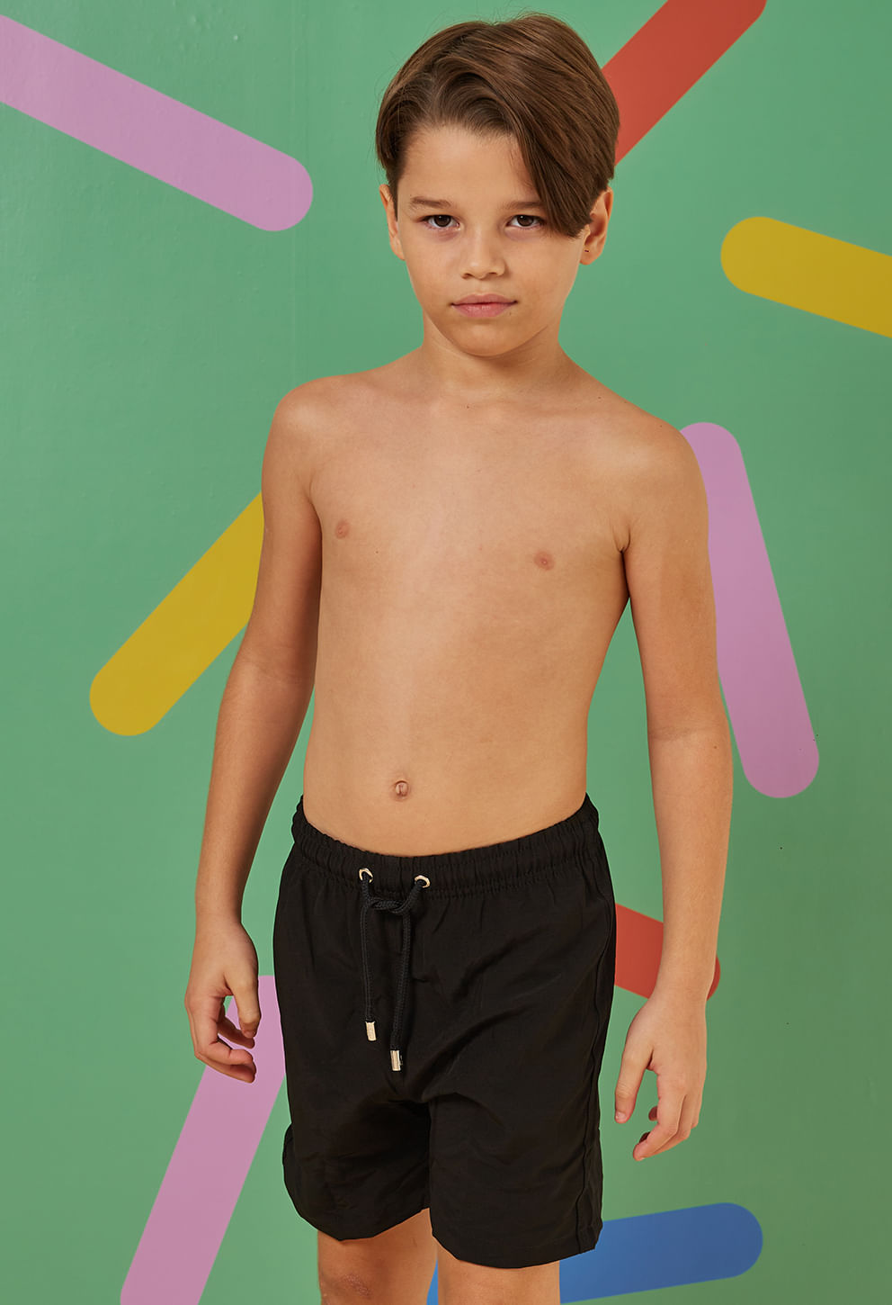+Bermuda infantil preta com cós elástico e amarração, bolsos laterais e traseiro. Conforto e praticidade para o dia a dia e momentos de lazer, fácil de