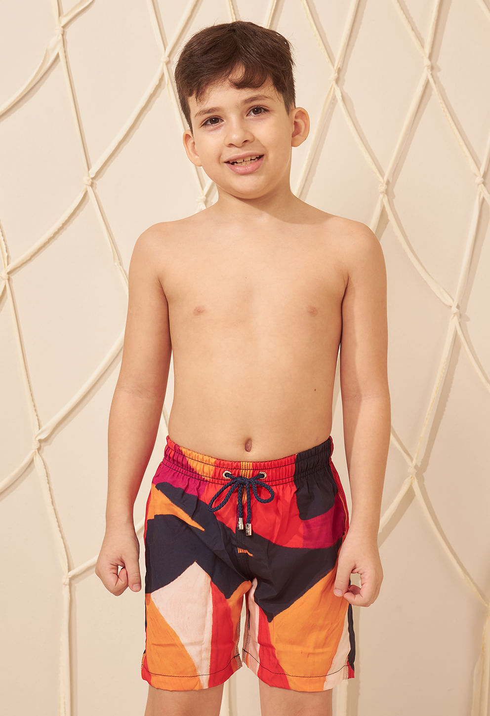 +Bermuda infantil estampada com cós elástico e amarração, bolsos laterais e traseiro. Confortável e prática para o dia a dia e para a praia, ideal para