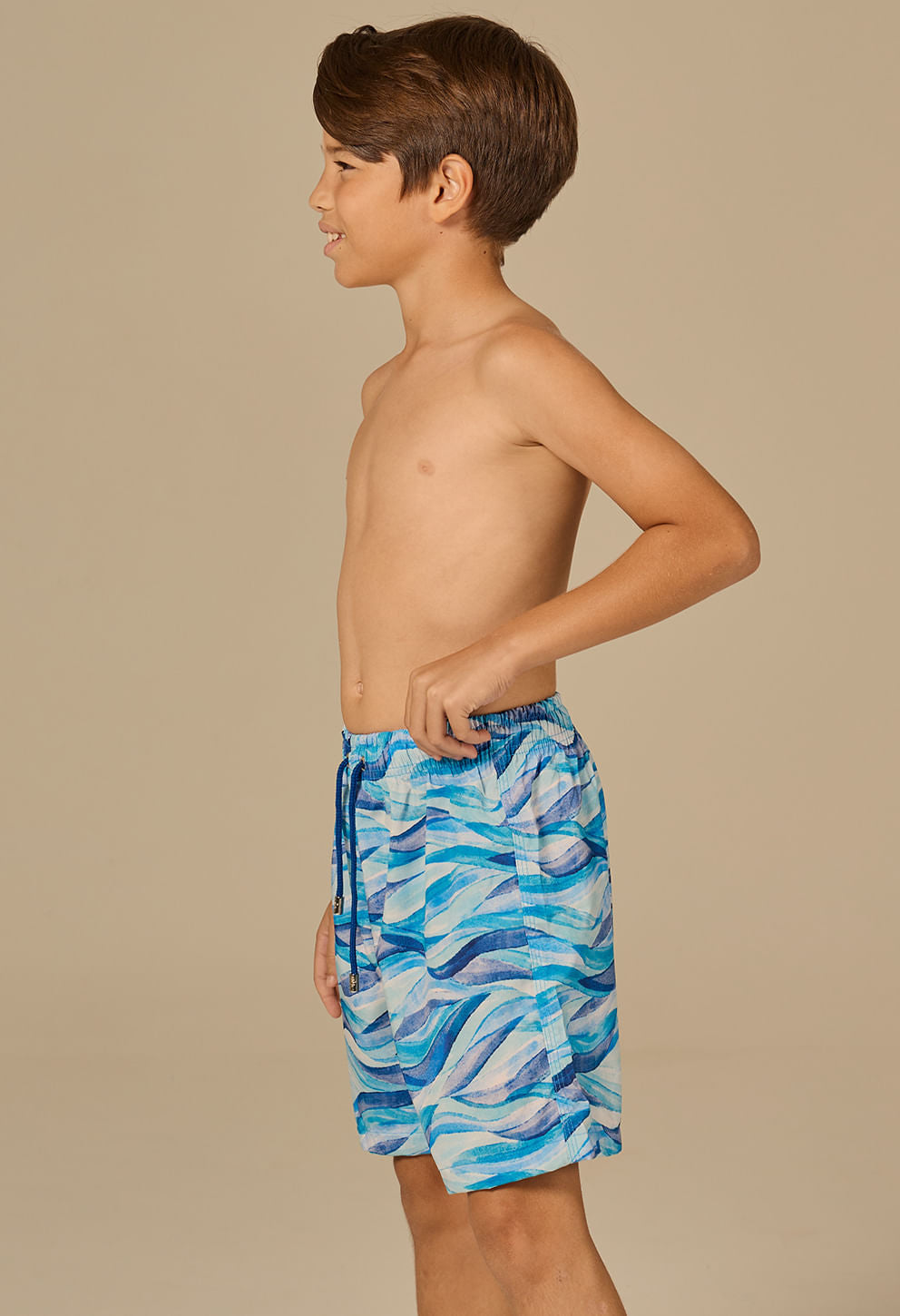 +Bermuda infantil com estampa abstrata, cós elástico e cordão para ajuste. Leve, confortável e com tecnologia LYCRA® SolarMax (FPU 50+) para proteçãoUV