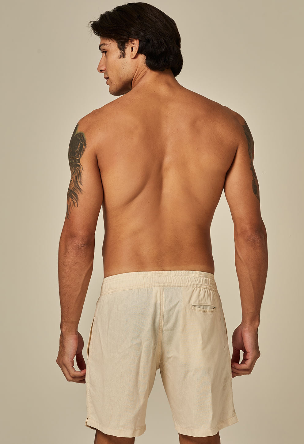 +Bermuda de linho leve com design minimalista e caimento confortável, ideal para looks casuais. Cós com cordão ajustável e bolsos práticos para o dia a