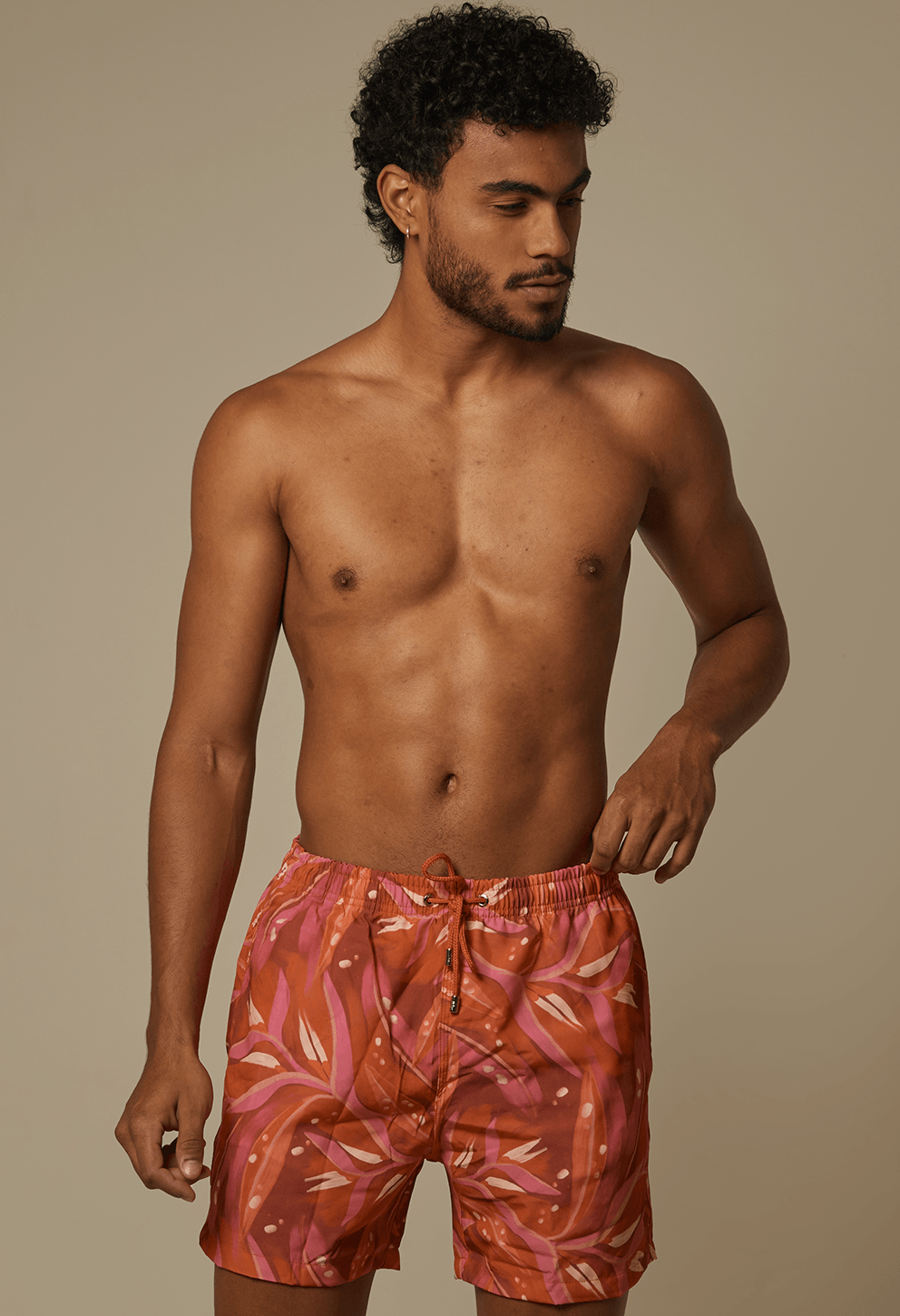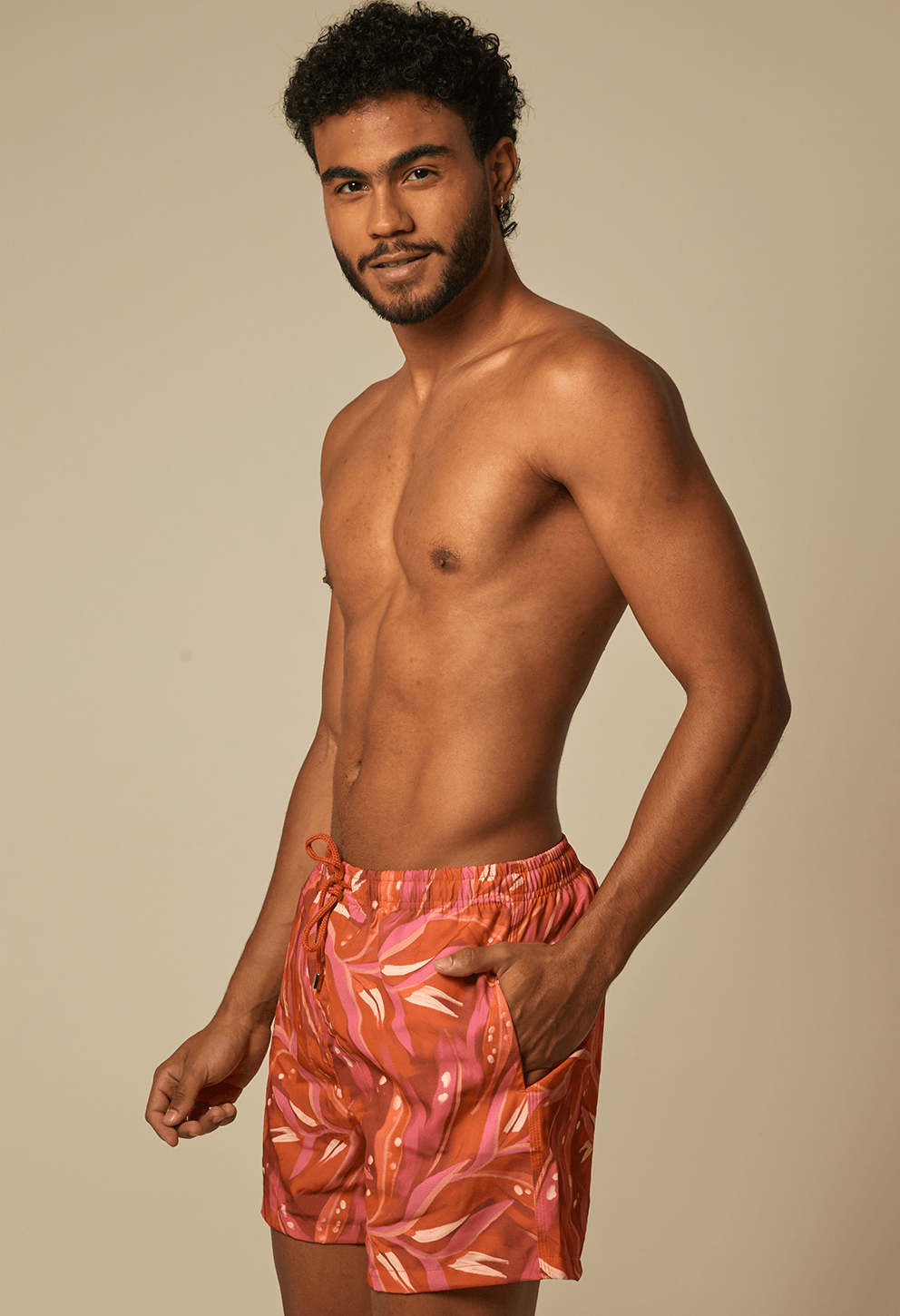 +Bermuda casual curta em tom rosa com estampa floral vibrante, cós elástico com amarração e bolsos práticos. Conforto leve para o verão sem perder o ca