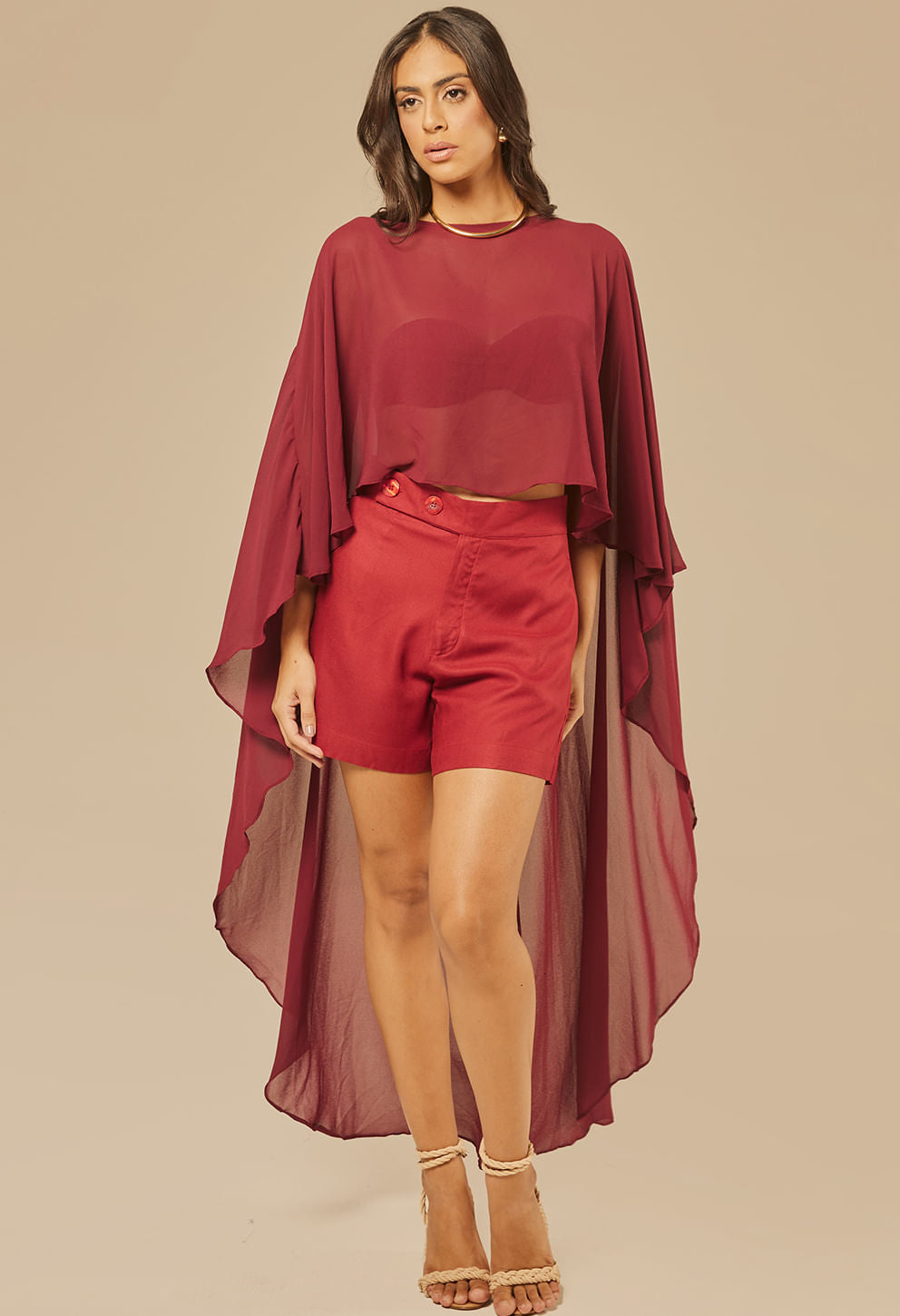 Tom vinho sofisticado que valoriza combinações com shorts e calças