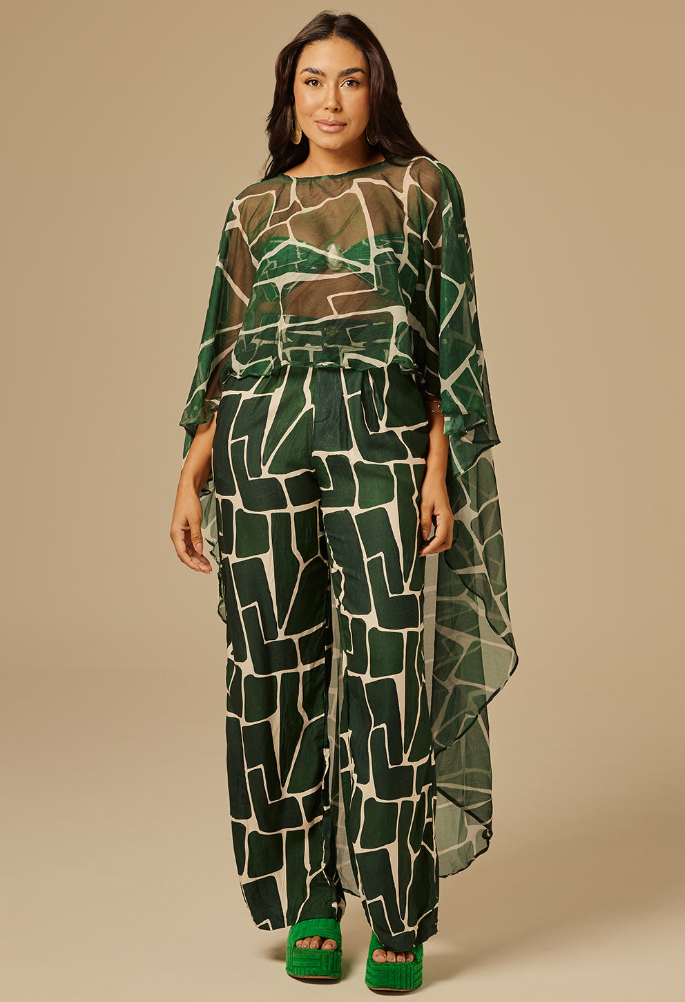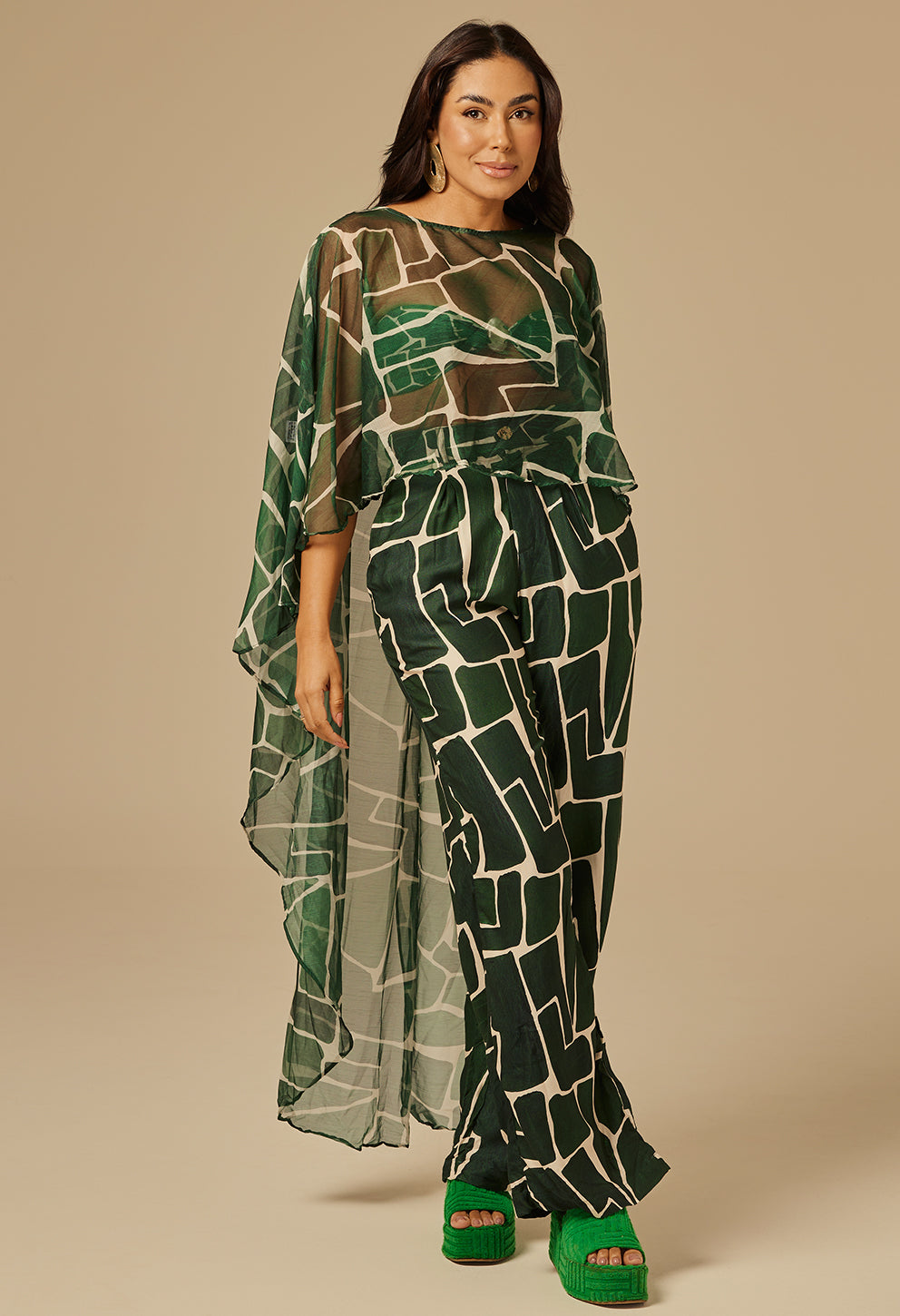 +Blusa Eleonora Mosaico com tecido leve e fluido, mangas amplas e transparência que proporcionam elegância e conforto para ocasiões casuais e beachwear