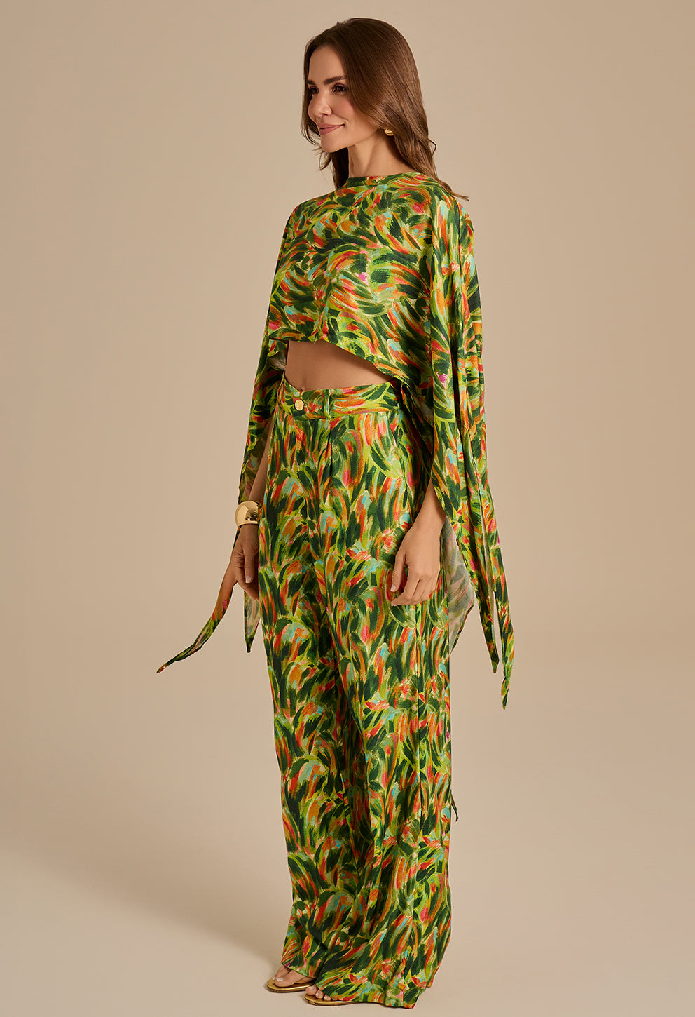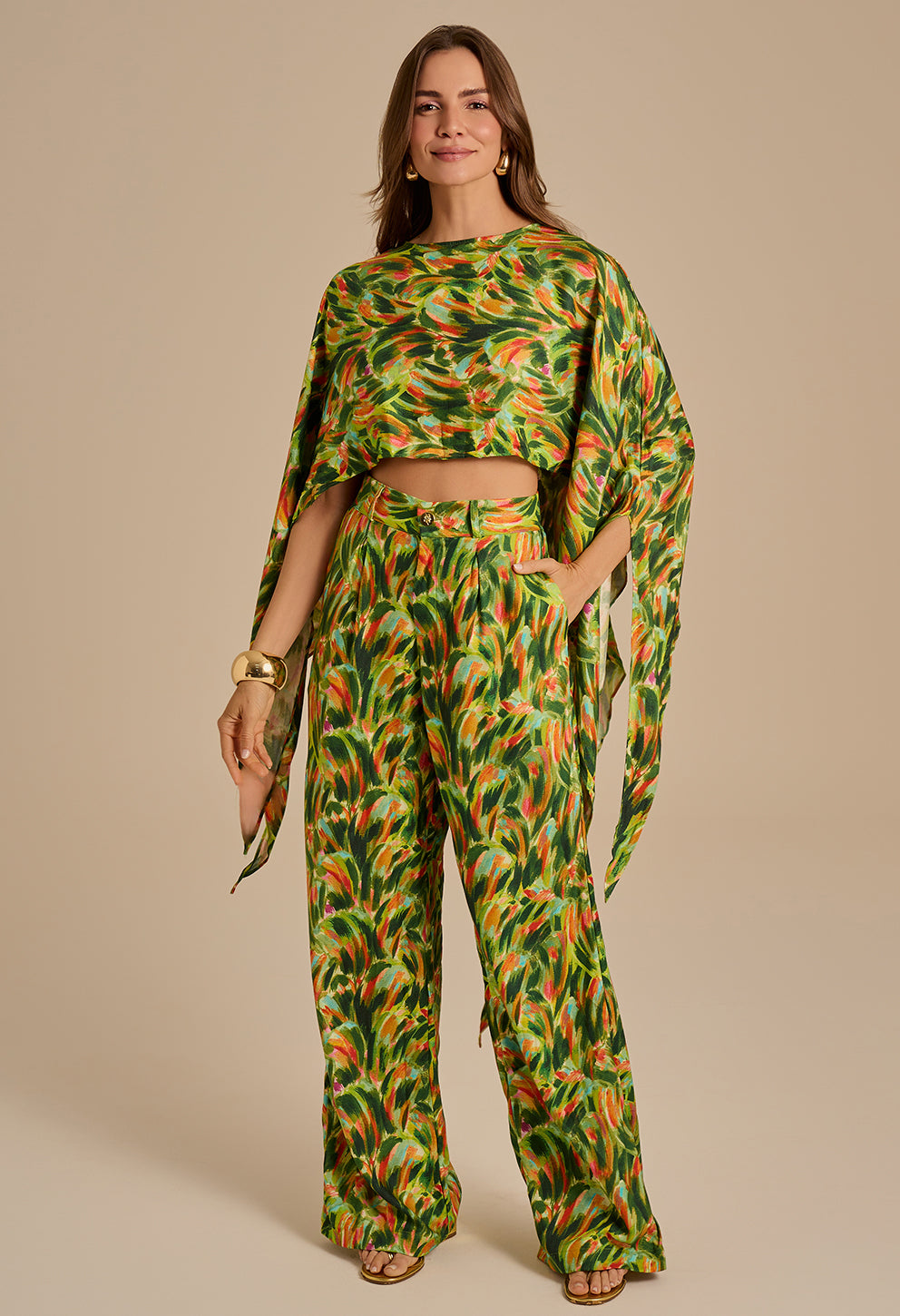 +Blusa com gola redonda simples e mangas amplas e fluidas, criando um visual elegante e moderno. Feito em tecido leve, possui comprimento cropped que valoriza a cintura e é versátil para combinar com diversas peças. Ideal para looks sofisticados e confortáveis. Todos os detalhes dourados são banhados a ouro.