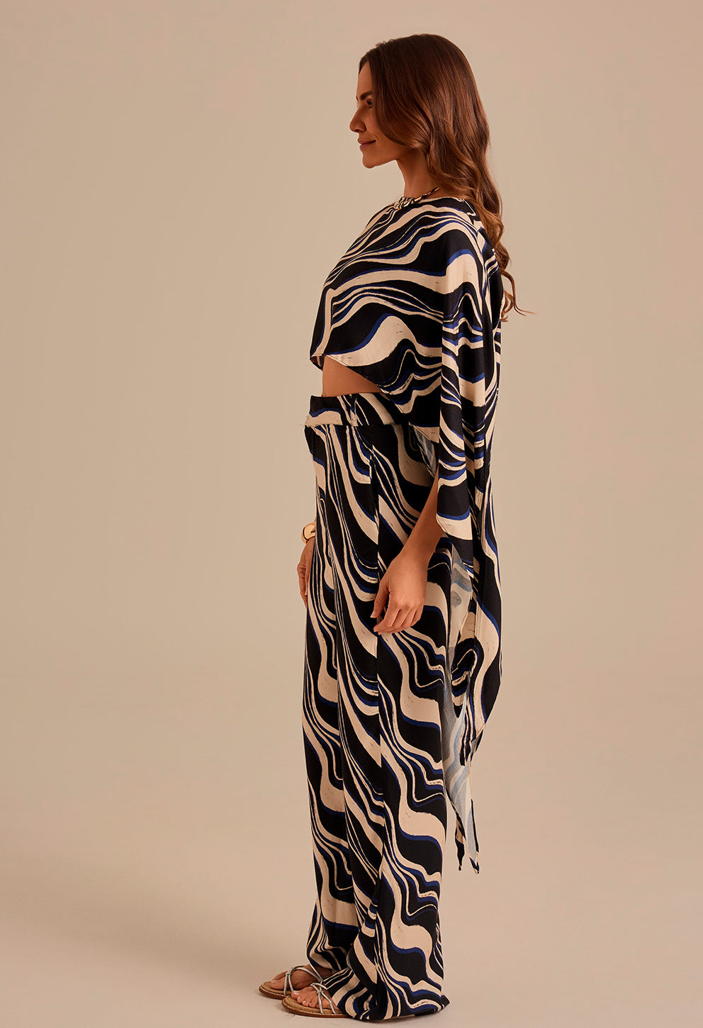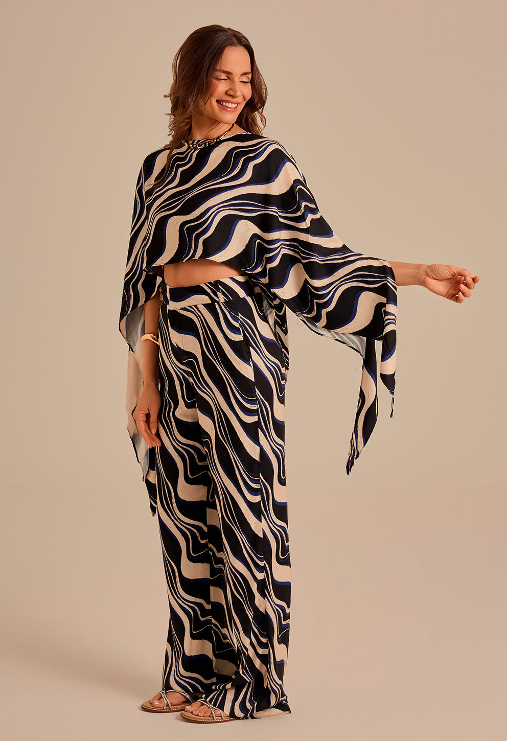 +Blusa com gola redonda simples e mangas amplas e fluidas, criando um visual elegante e moderno. Feito em tecido leve, possui comprimento cropped que valoriza a cintura e é versátil para combinar com diversas peças. Ideal para looks sofisticados e confortáveis. Todos os detalhes dourados são banhados a ouro.