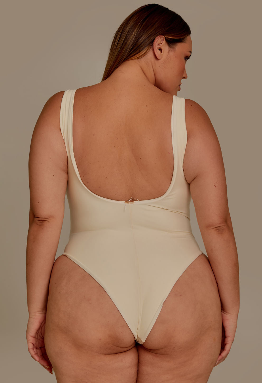 +Body versátil com modelagem justa, decote oval e costas abertas. Alças largas e semi fio oferecem conforto e sustentação, com aviamentos dourados banh