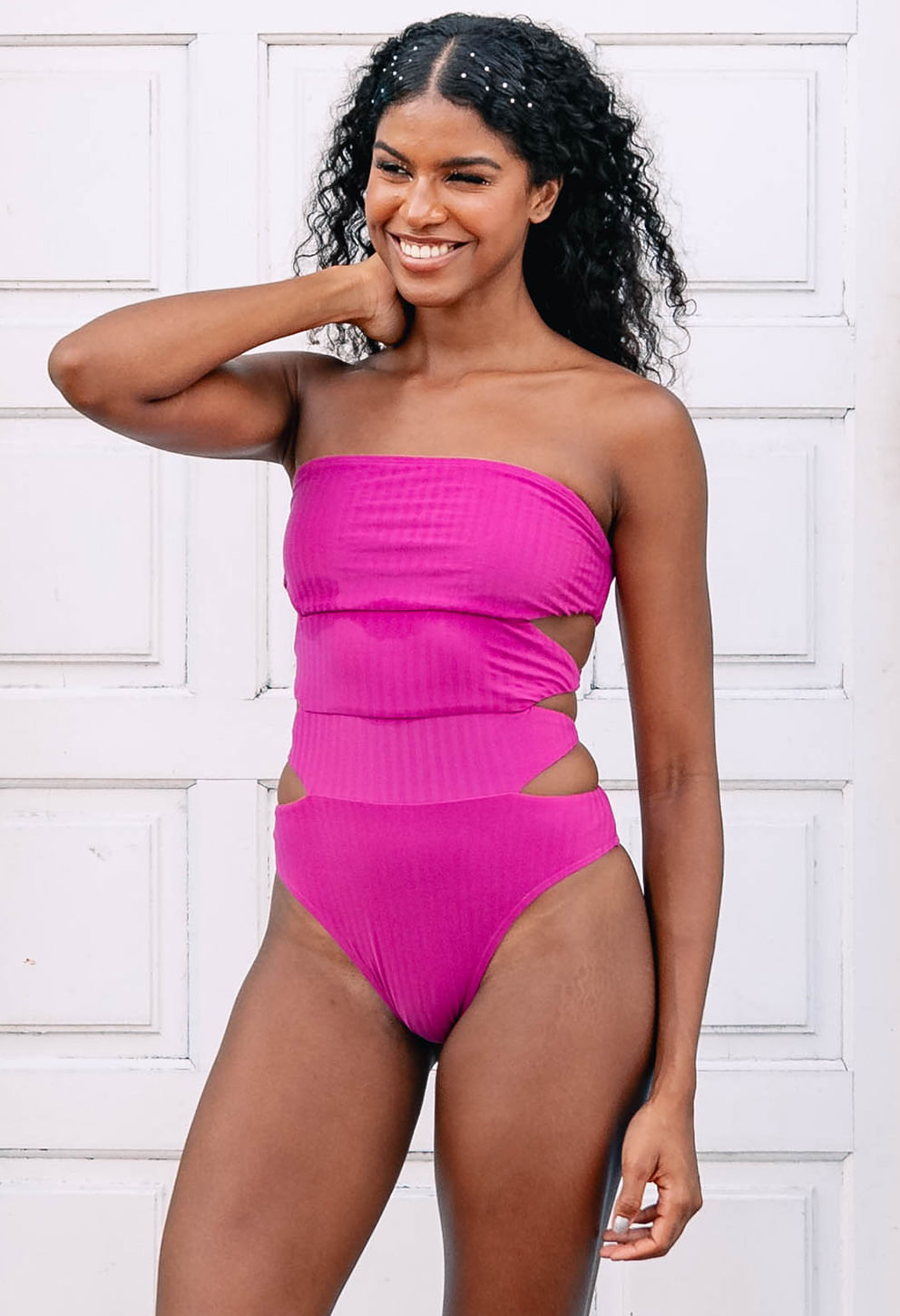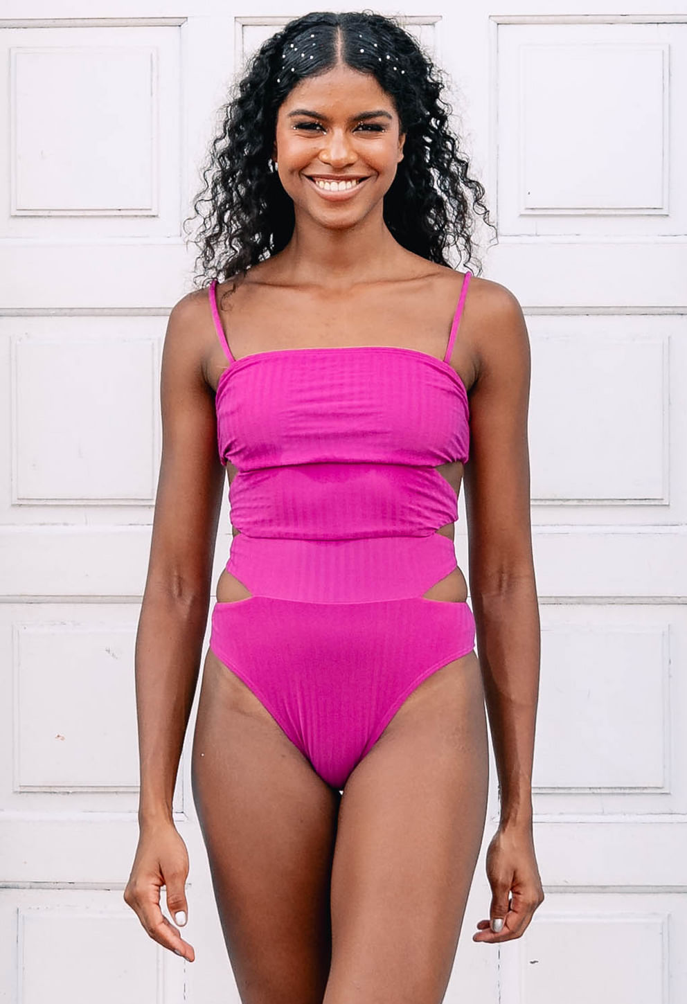 +Body canelado com bojo removível, alças reguláveis e recortes laterais que valorizam a silhueta. Tecido texturizado, aviamentos dourados banhados a r