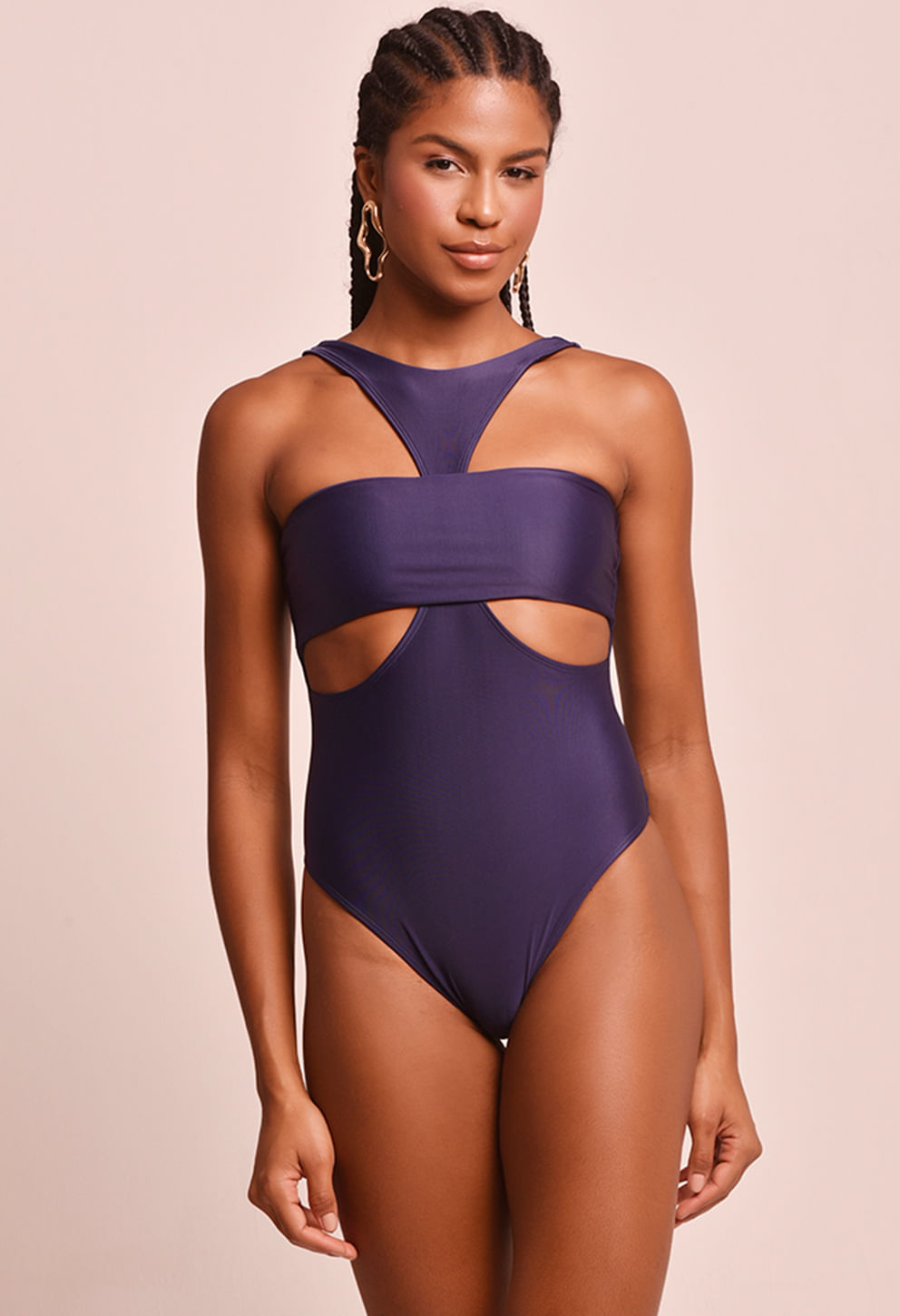 +Body marinho com design cut out moderno, bojo removível e alças nadador para ajuste confortável — ideal para compor looks de praia e casuais com elegÂ
