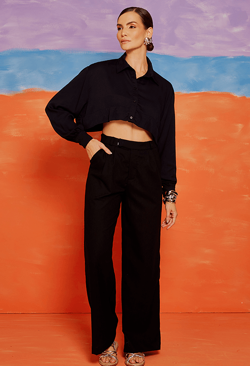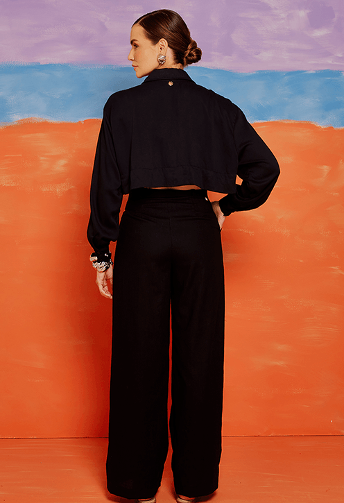 +Calça pantalona sofisticada com caimento fluido, cós alto e pregas frontais. Ideal para looks elegantes e confortáveis, combina com bodies e camisas,