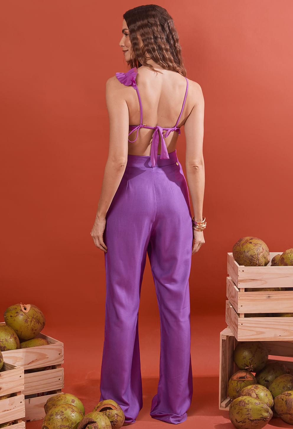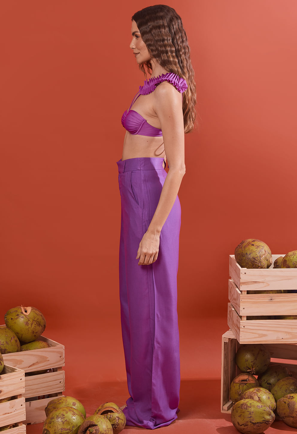 +Calça pantalona fluida e sofisticada, de corte amplo e cintura alta. Versátil para combinar com beachwear ou looks casuais, confortável e com aviagens