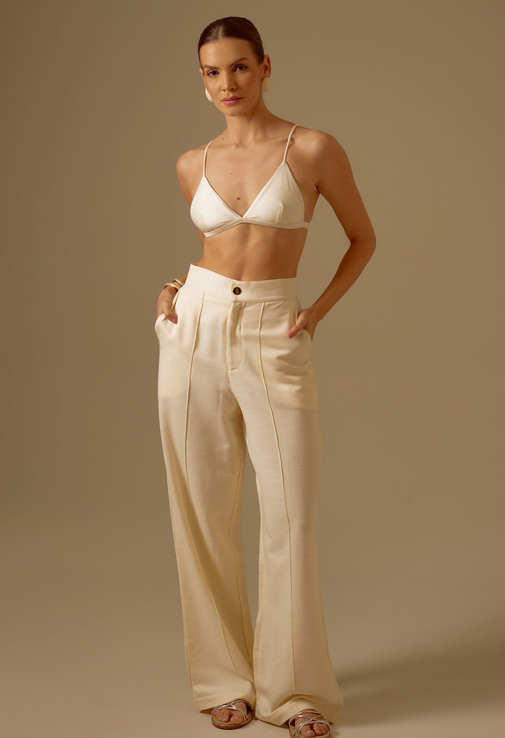 +Calça pantalona off white com shape amplo e tecido leve, que une conforto e sofisticação. Ideal para transitar da praia à cidade, com acabamento refin