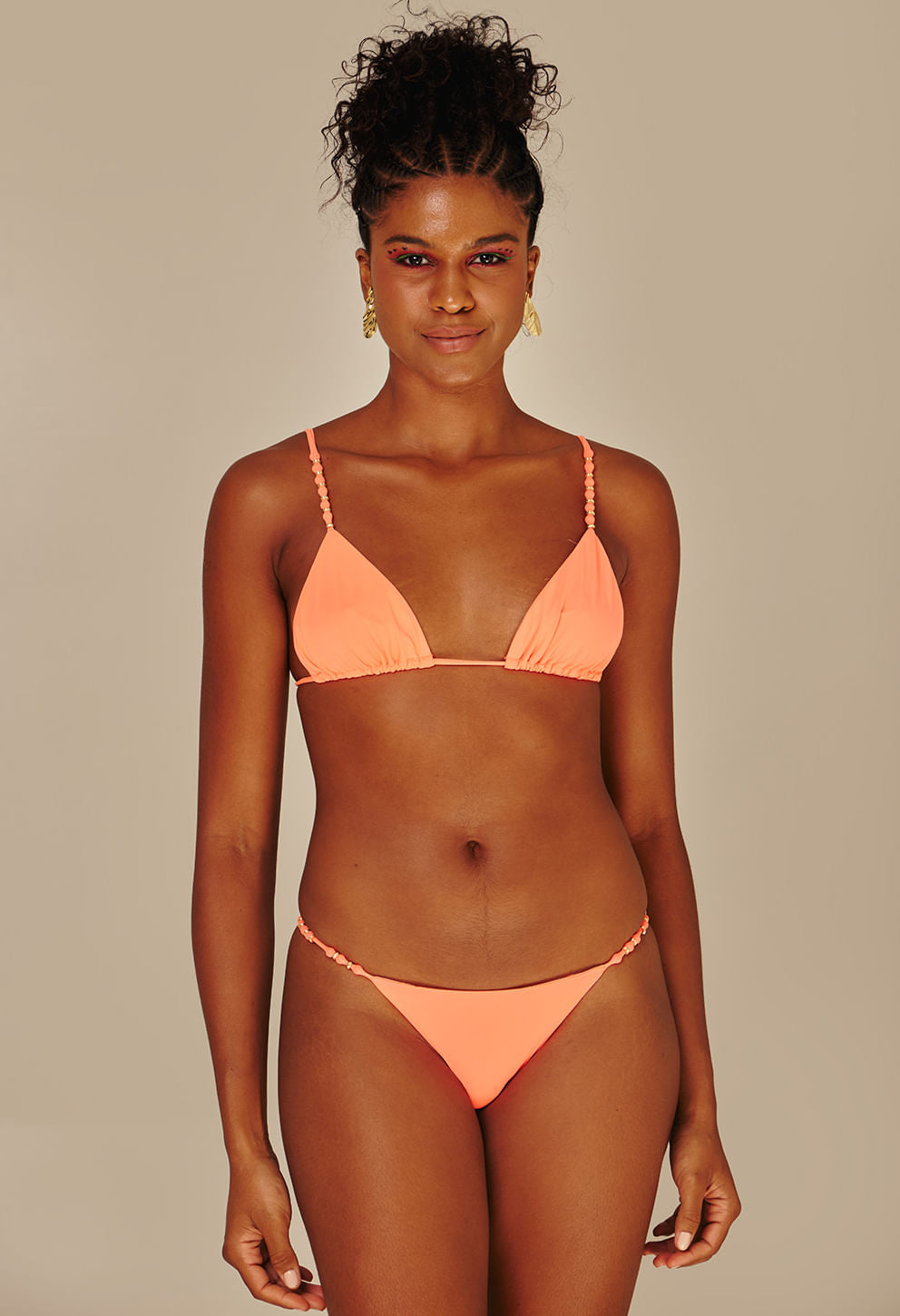 Laranja intenso que destaca o bronzeado e ressalta a personalidade.