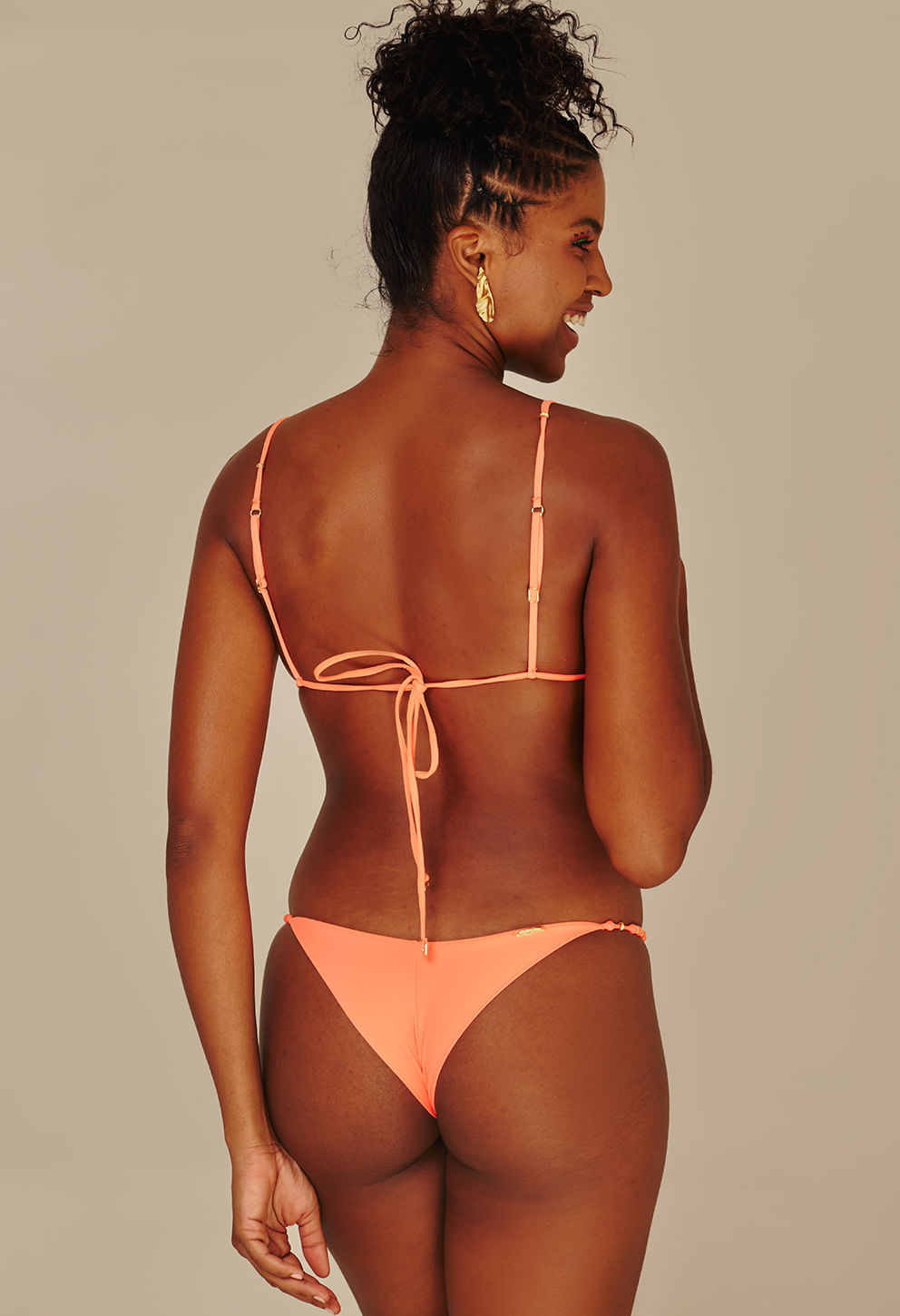 +Calcinha fio dental em laranja vibrante, com laterais delicadas e acabamento dourado. Conforto e modelagem que valorizam o corpo, ideal para quem quer