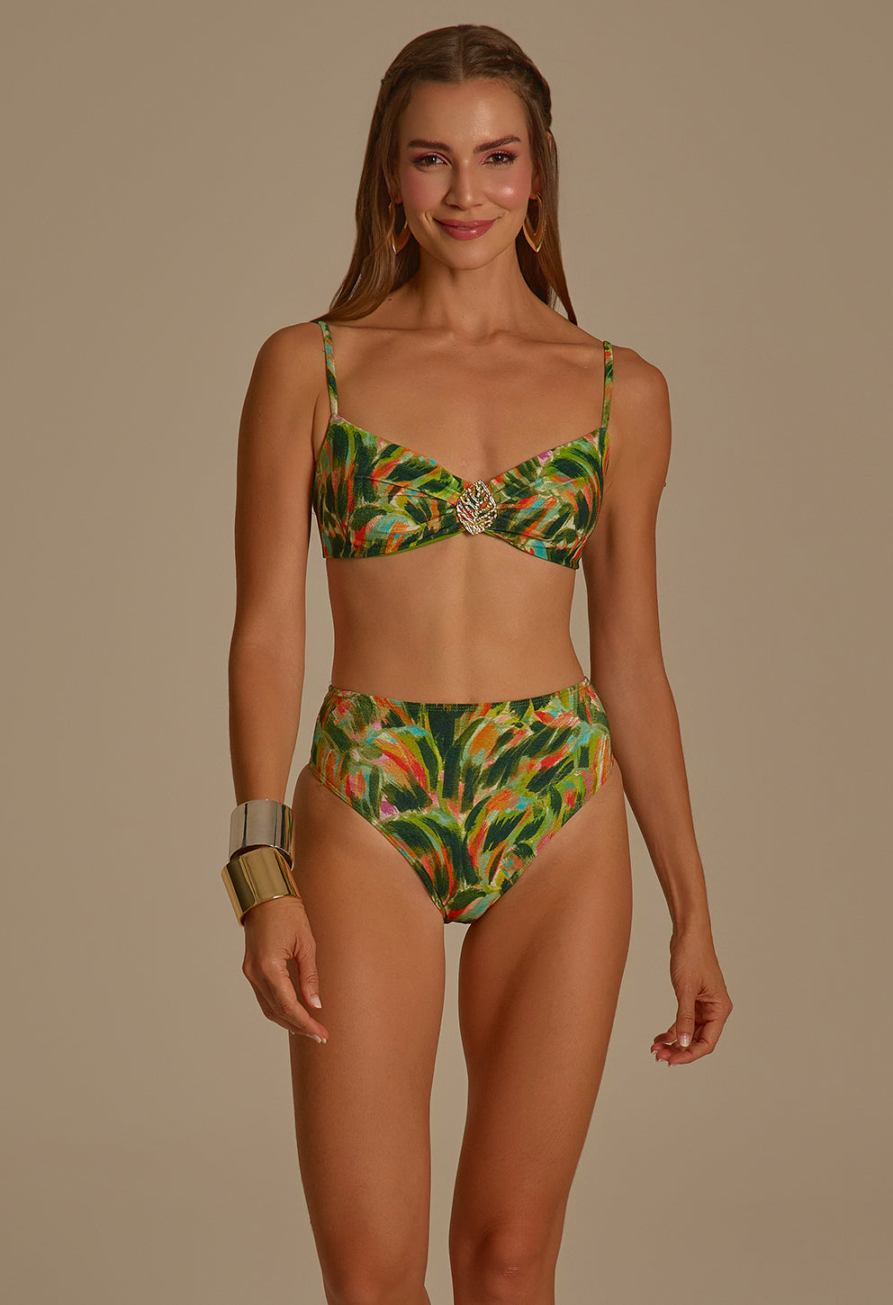 +A Calcinha Hot Beatriz possui modelagem alta e composta, valorizando a silhueta feminina com conforto e sofisticação. Versátil e elegante, é uma peça coringa no guarda-roupa beachwear, ideal para diversas combinações. Todos os detalhes dourados são banhados a ouro.