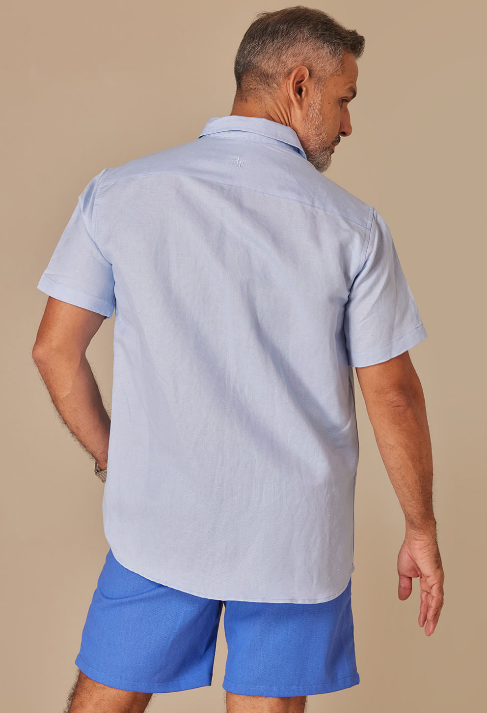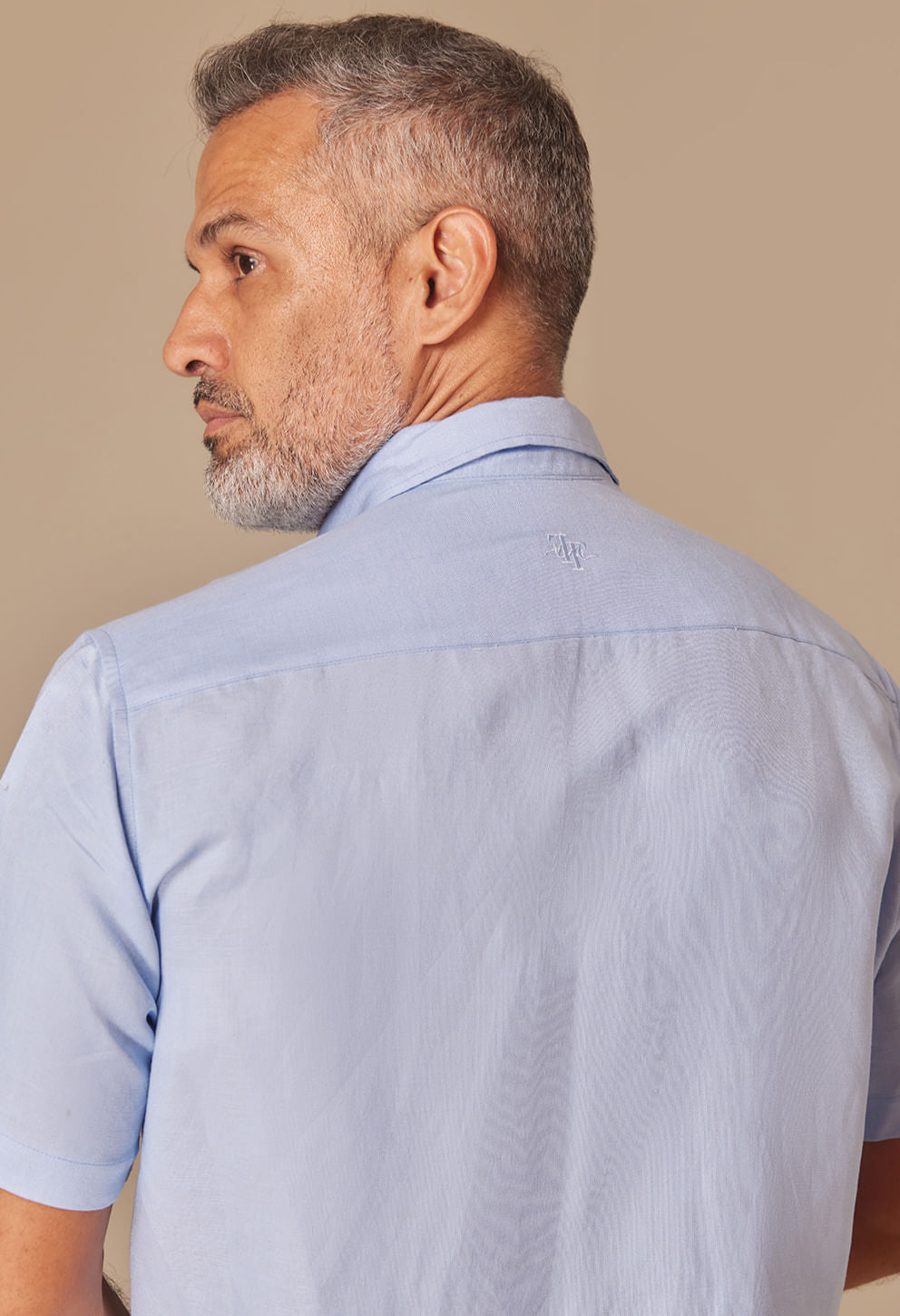 +Camisa slim de linho e viscose, leve e fresca, com corte ajustado e abotoamento frontal. Ideal para composições elegantes com bermudas ou calças, traz