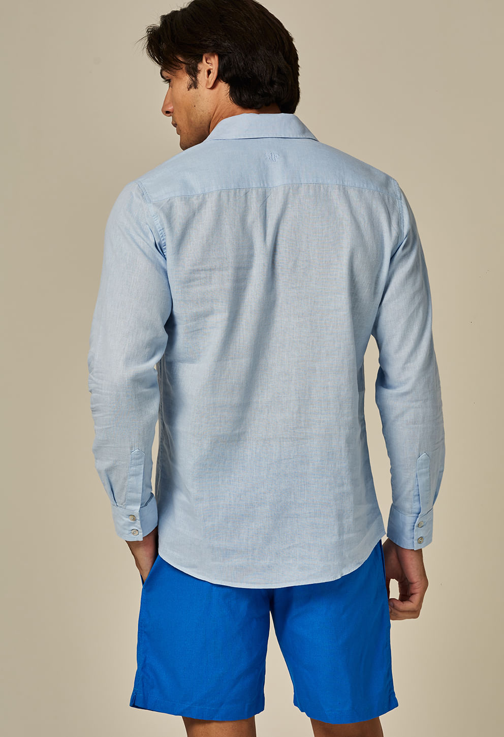 Camisa Linho Slim Manga Longa Azul Sereno