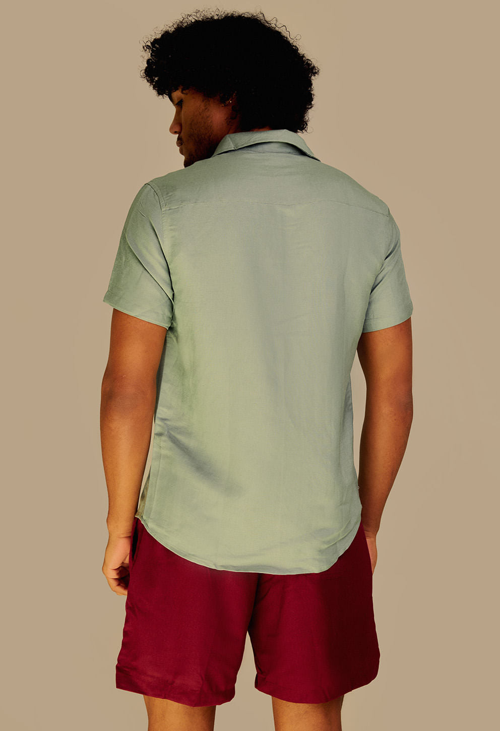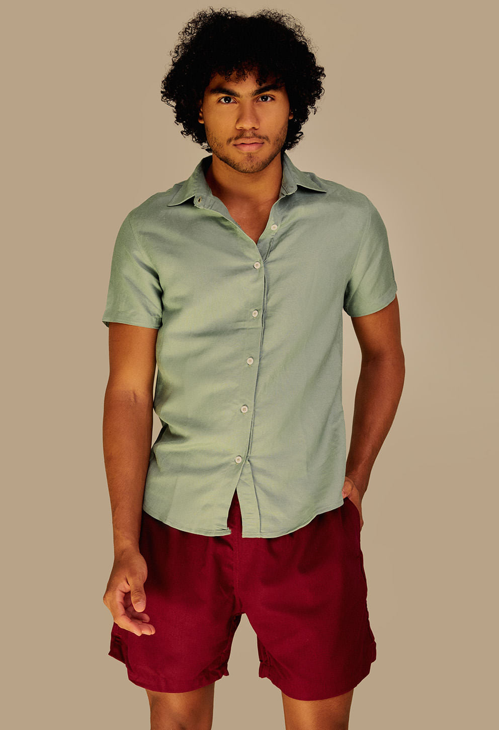 Camisa Masculina Matisse Slim Fit ajustada ao corpo, possui manga curta, abotoamento frontal e pala no traseiro.