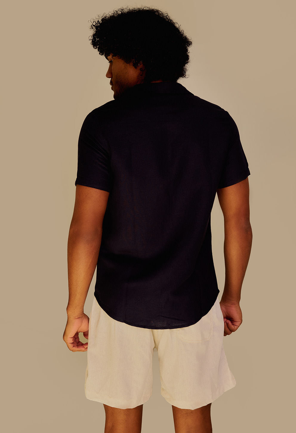 Camisa Matisse Linho Manga Curta Marítimo é ajustada ao corpo, possui manga curta, abotoamento frontal e pala no traseiro.