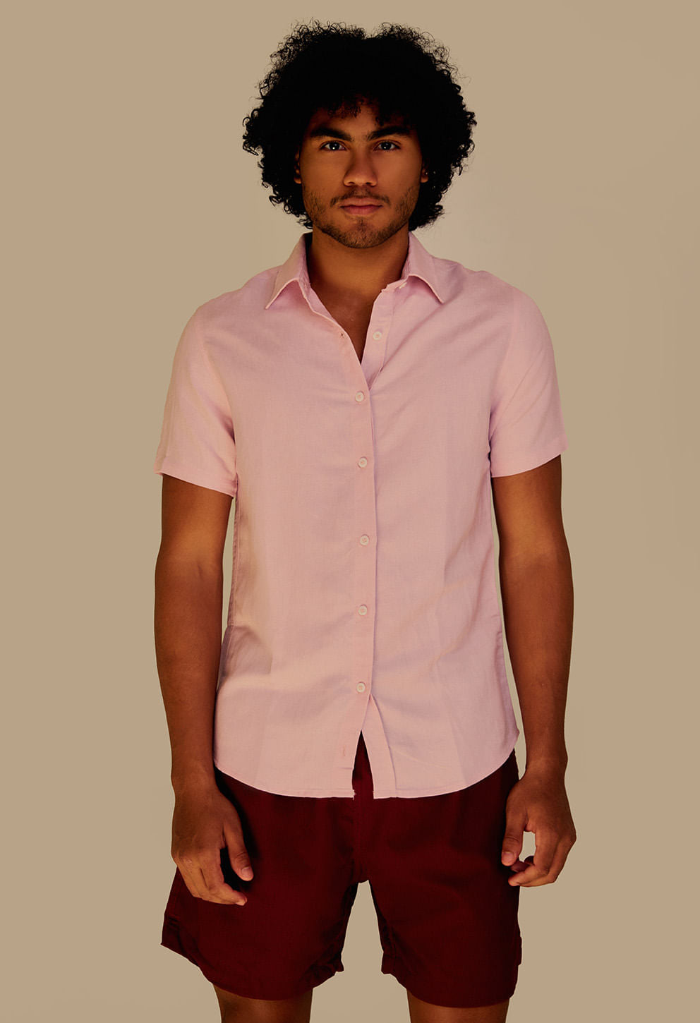 Camisa Matisse Linho Manga Curta Rosa Giz