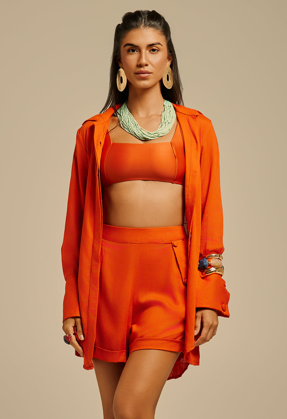 +Camisão com modelagem ampla e caimento leve, ideal para compor looks modernos e confortáveis. O destaque fica por conta dos punhos estruturados com botões, que acrescentam sofisticação e acabamento refinado à peça. Com gola clássica e fechamento frontal, é versátil para usar como peça principal ou sobreposição, transitando com elegância entre produções casuais e mais elaboradas. Todos os detalhes dourados são banhados a ouro.