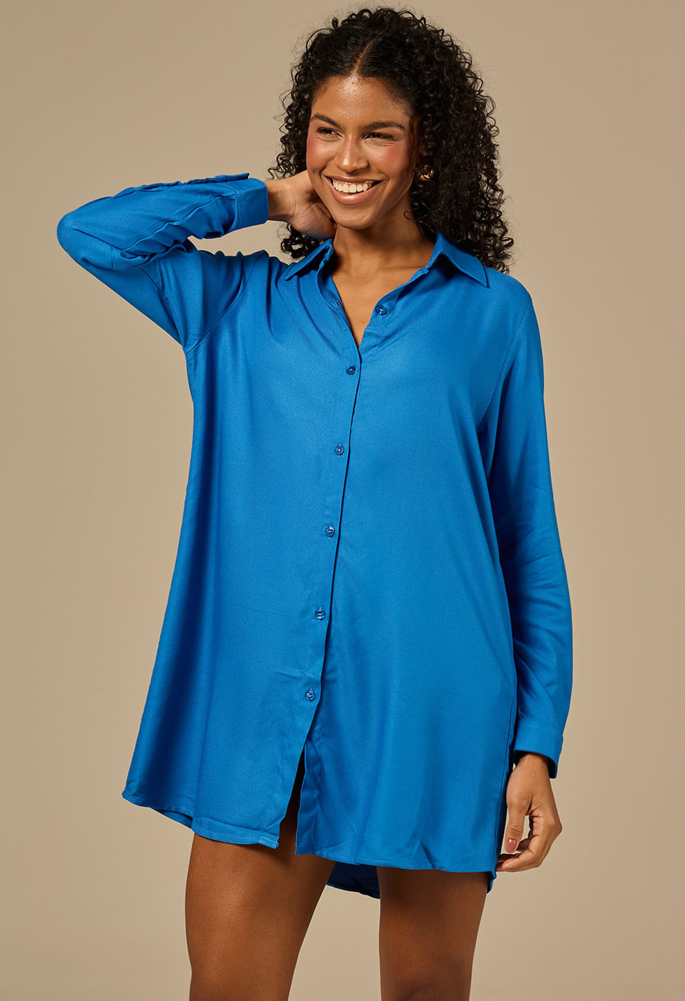O Camisão possui botões frontais e conta com um conceito moderno e confortável para quem ama o sol. Indispensável, a saída de praia possui modelagem que valoriza o busto e o colo, ideal para dias quentes em que a liberdade está em alta. Todos os aviamentos dourados são banhados a ouro.