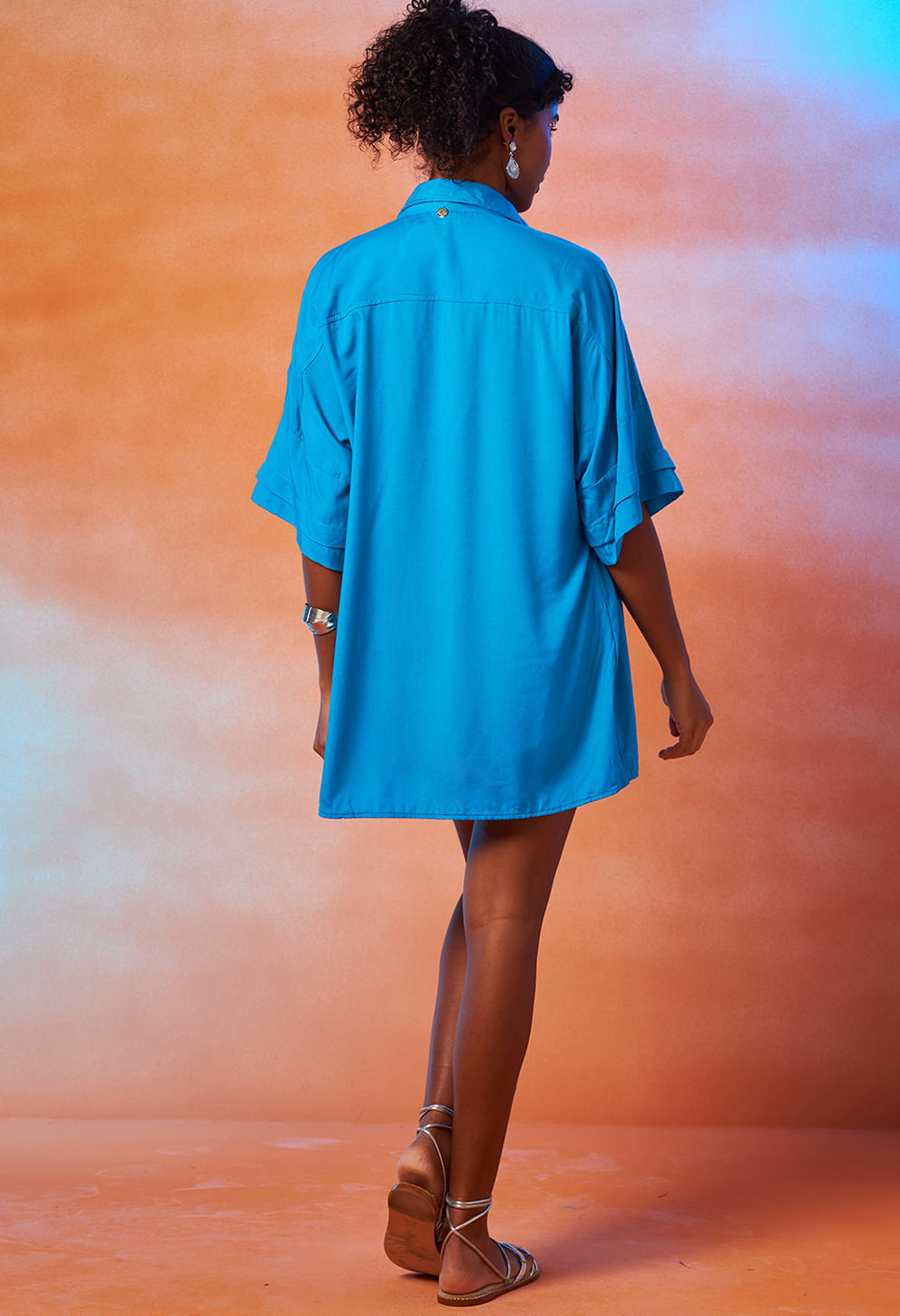 Possui uma modelagem ampla vista com botões, manga curta e um detalhe na bainha da manga. É uma peça indispensável para o seu guarda roupa, permitindo diversas combinações tanto para o beachwear quanto para o casual.