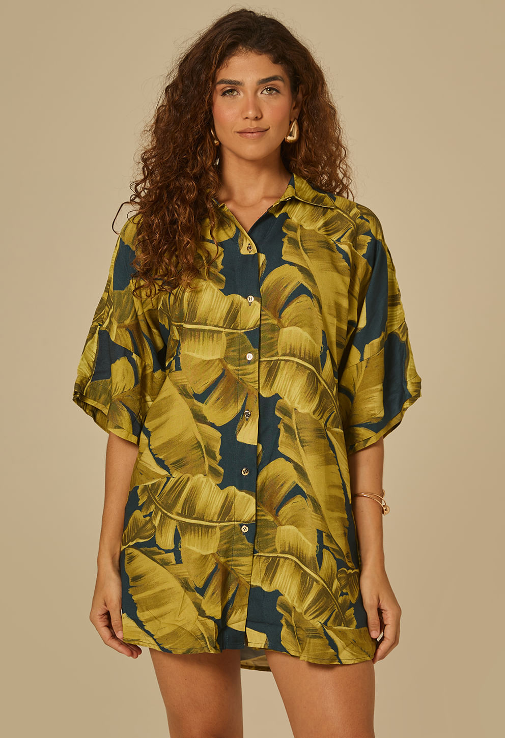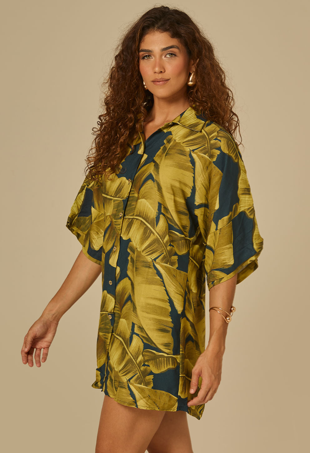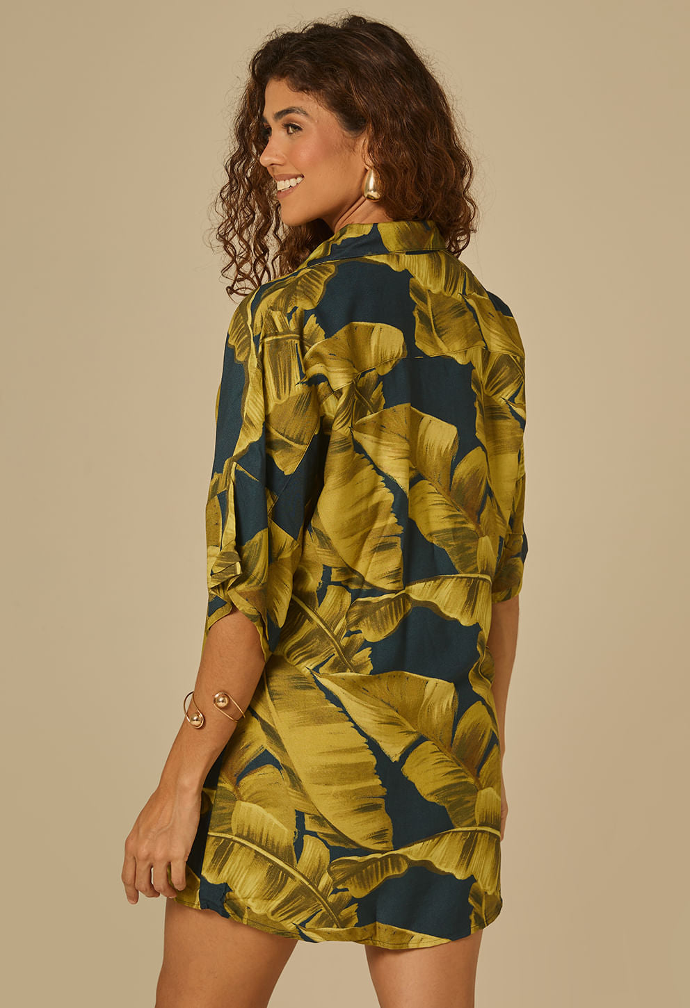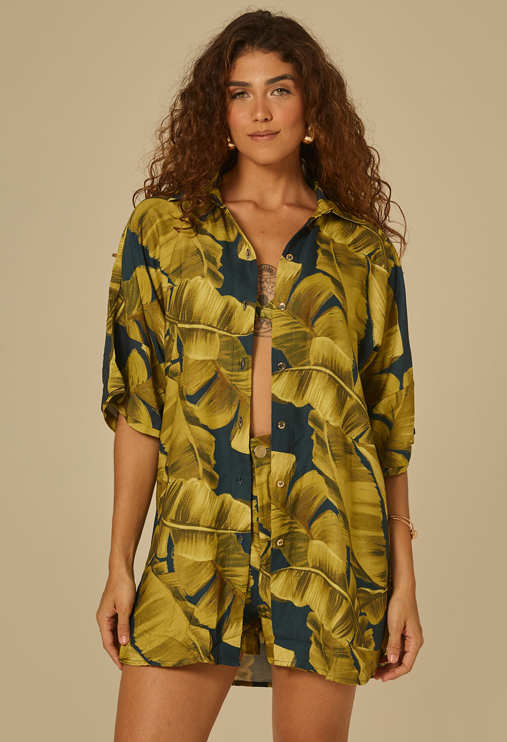 Possui uma modelagem ampla vista com botões, manga curta e um detalhe na bainha da manga. É uma peça indispensável para o seu guarda roupa, permitindo diversas combinações tanto para o beachwear quanto para o casual.