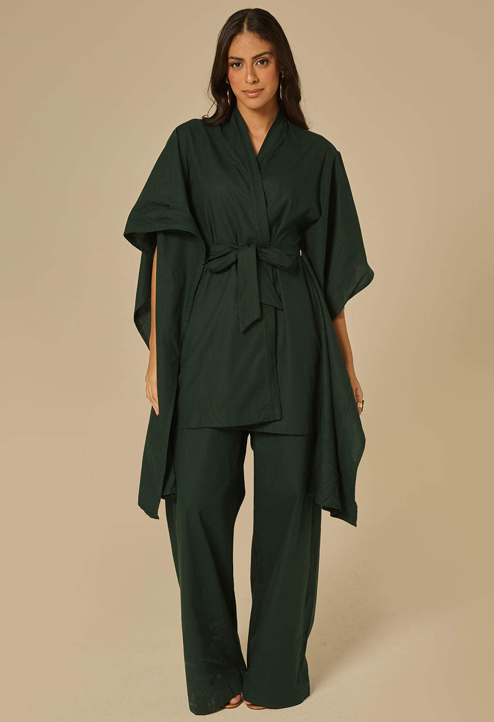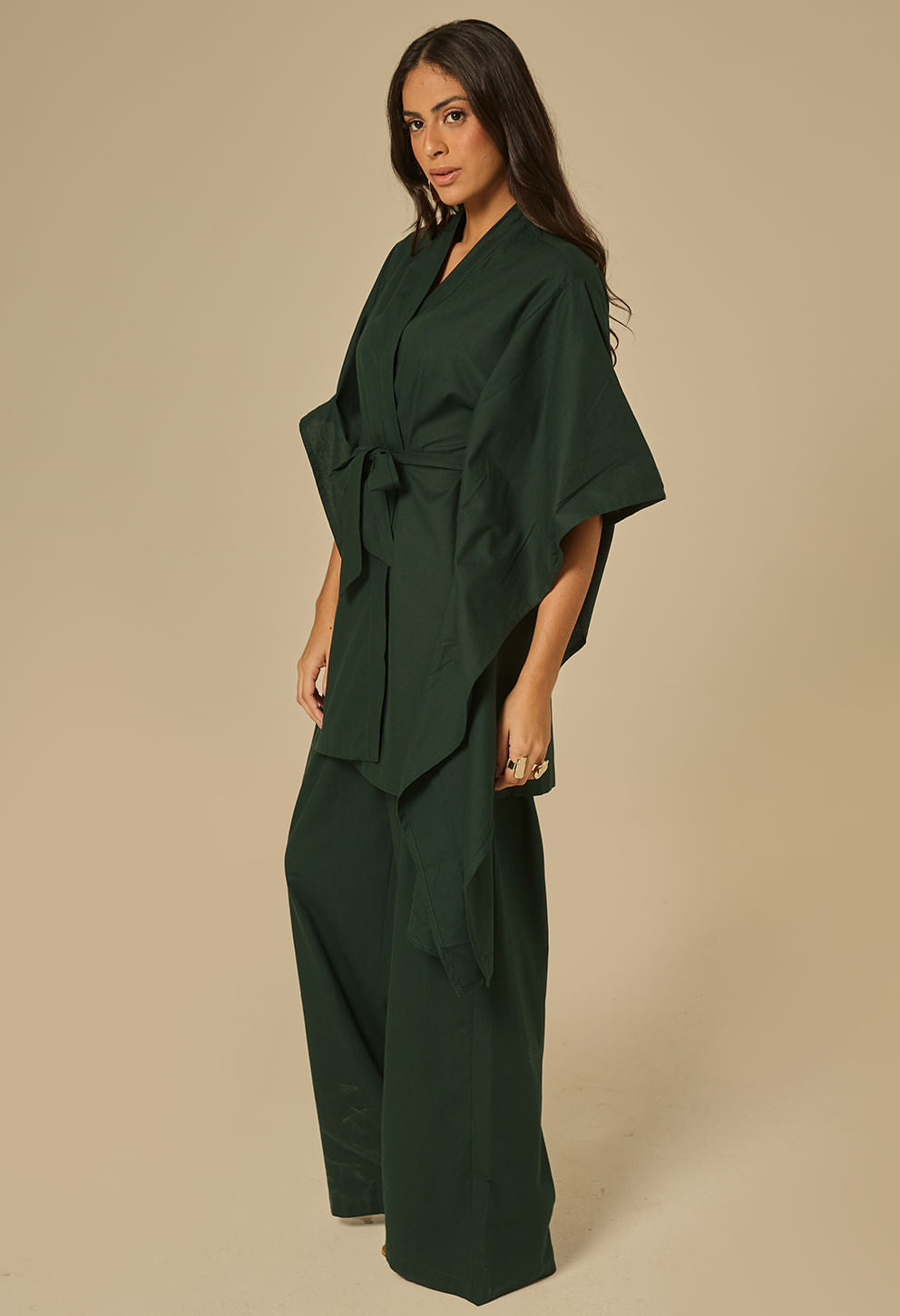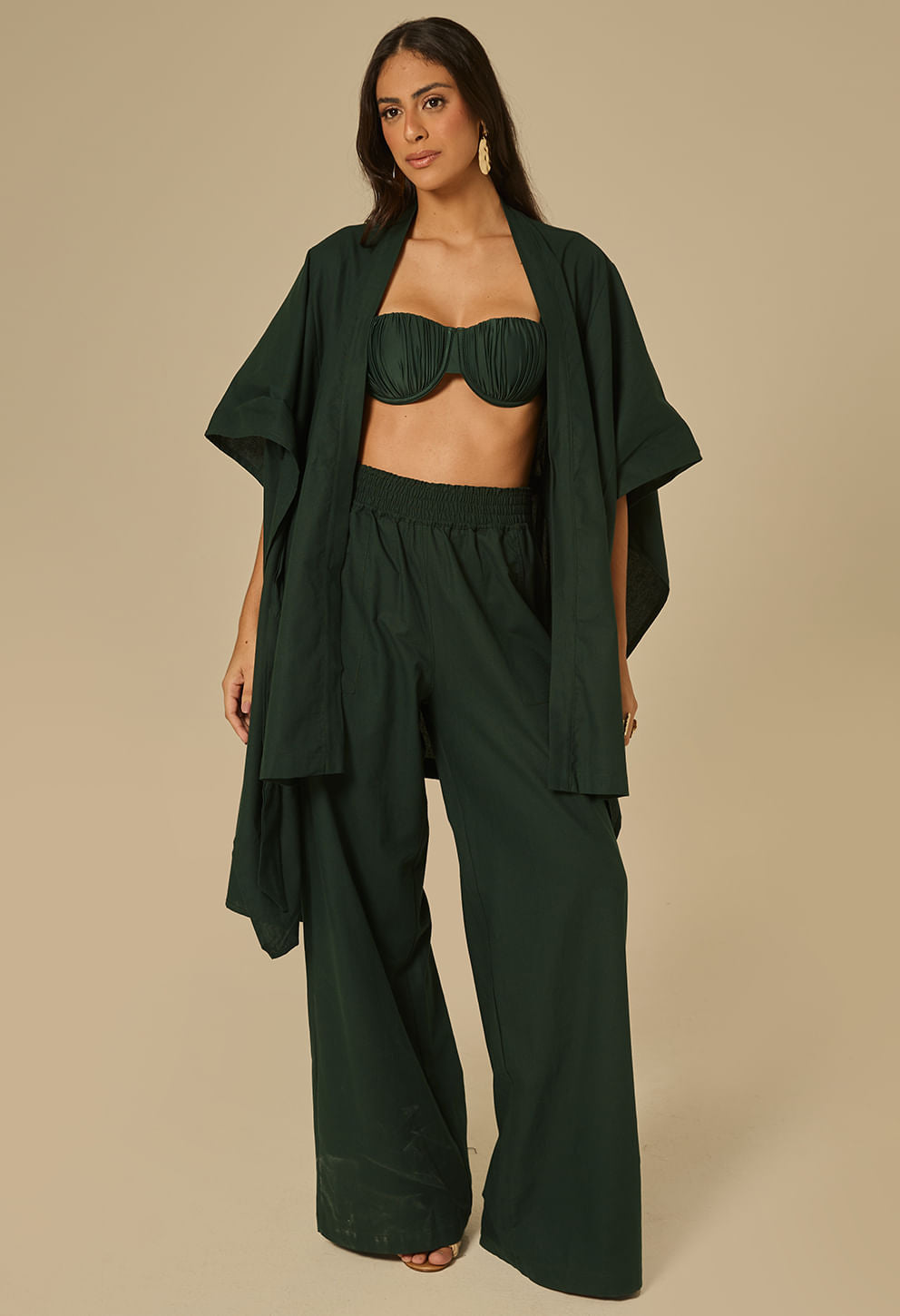 +Kimono Constelação em verde floresta, com modelagem ampla e faixa removível para versatilidade. Conforto e elegância em tecido 100% algodão, ideal pra