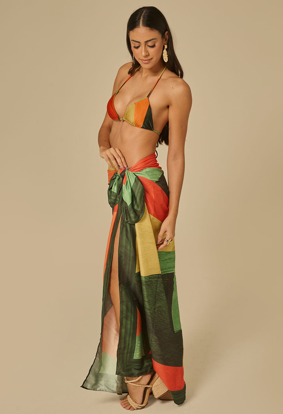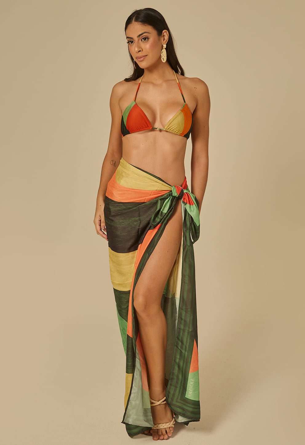+Pareô Barrado Solare confeccionado em tecido leve e fluido, ideal para looks sofisticados e confortáveis na praia. Versátil, permite diferentes amarra