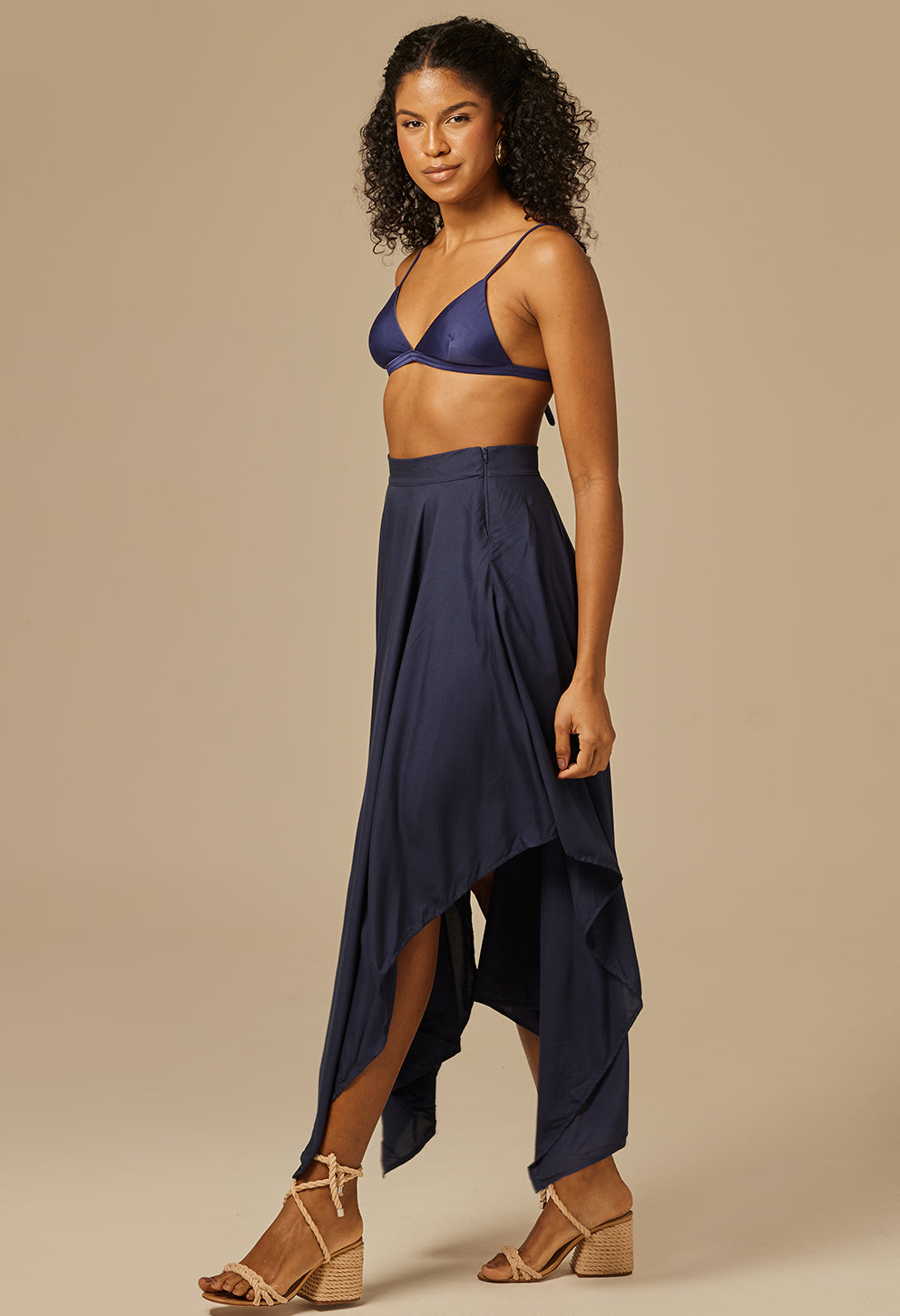 +Saia Aline DB Marinho apresenta design fluido e sofisticado com cintura alta e barrado irregular, valorizando a silhueta com elegância. Confeccionada