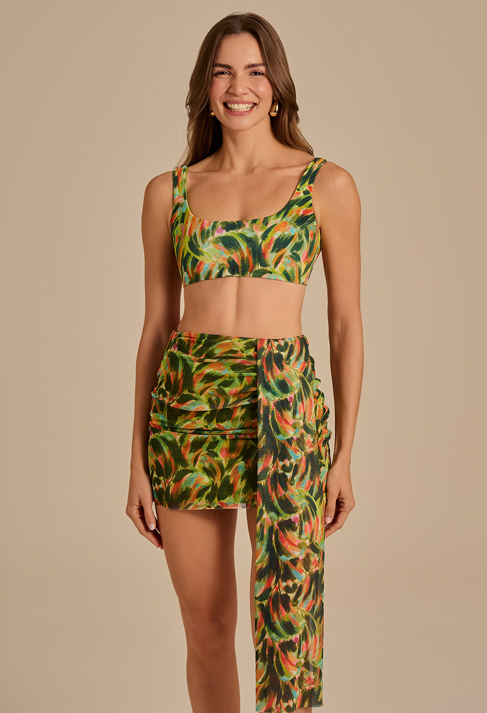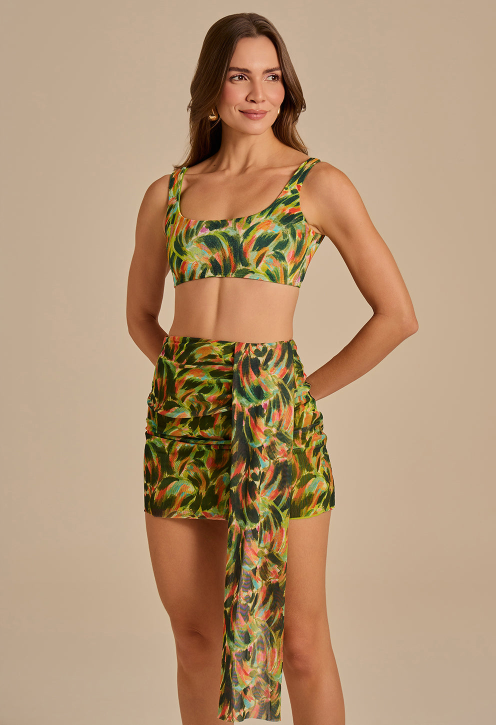 +A Saia Amélia é mais que uma saída de praia: é o seu passaporte para um visual de resort chique instantâneo. Com uma modelagem assimétrica e fluida, esta saia curta cria um movimento elegante, valorizando sutilmente a sua silhueta. Sinta o toque incrivelmente leve e fresco do tecido, perfeito para o clima tropical, que garante o máximo de conforto enquanto você aproveita o dia.