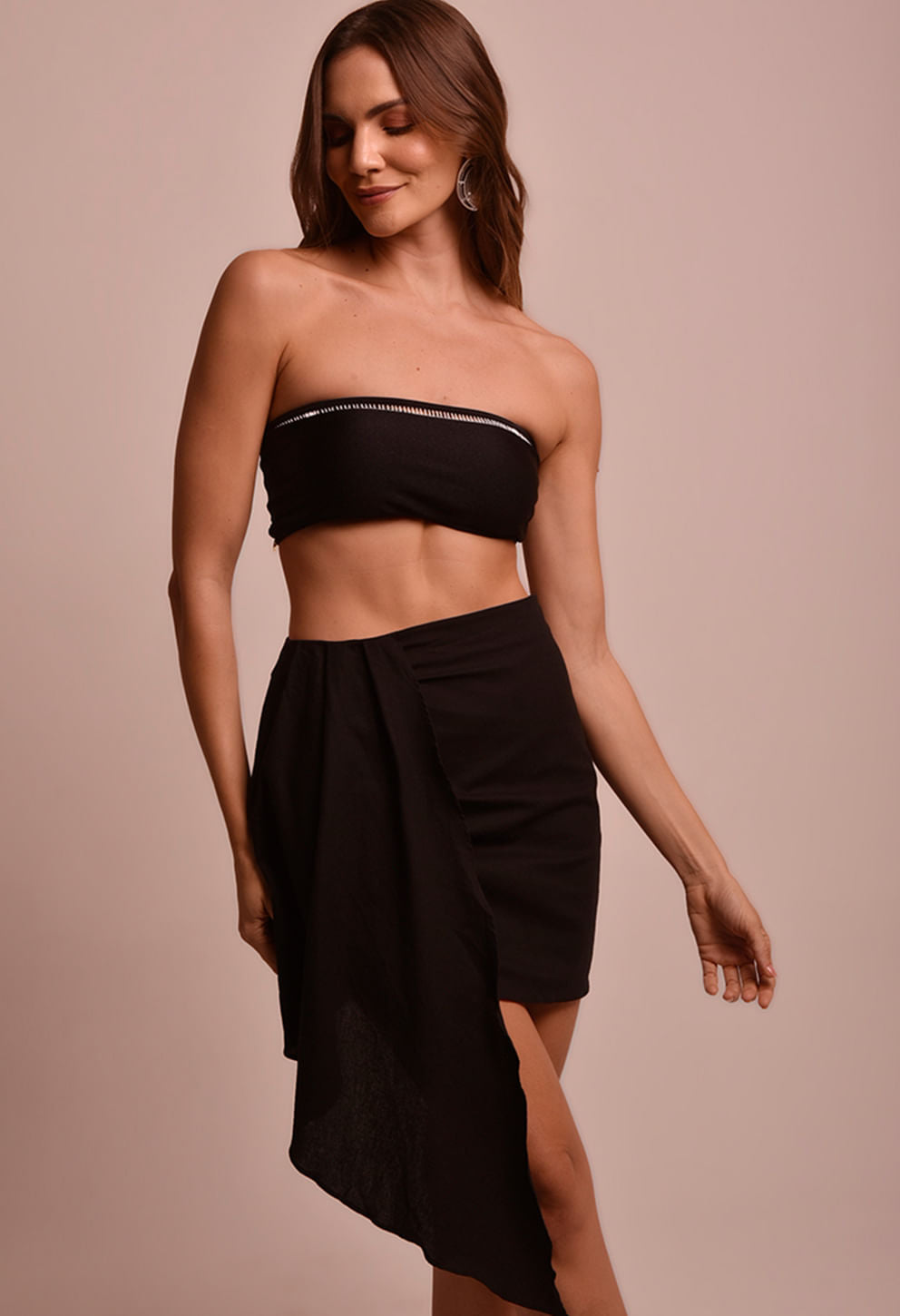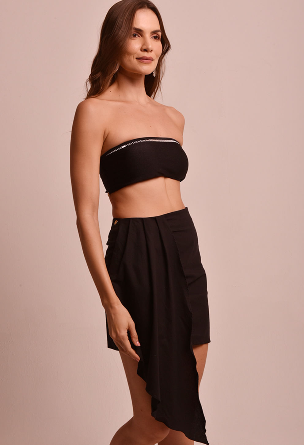 +Saia midi/curta com modelagem ajustada e sobreposição lateral que valoriza a silhueta; perfeita para looks elegantes e casuais ao longo do ano.