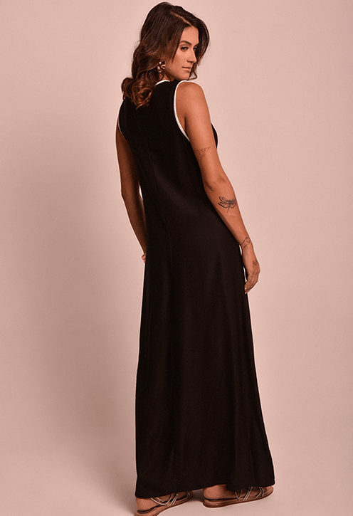 Fendas altas e comprimento que alongam a silhueta com leveza.