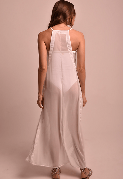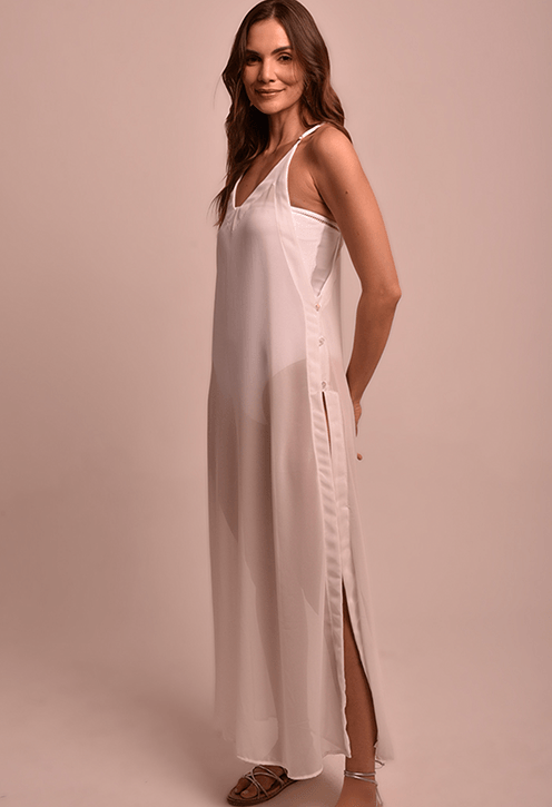 +Saída longa e fluida que valoriza a silhueta com elegância. Conta com fenda lateral alta e botões dourados banhados a ouro, ideal para complementar o—