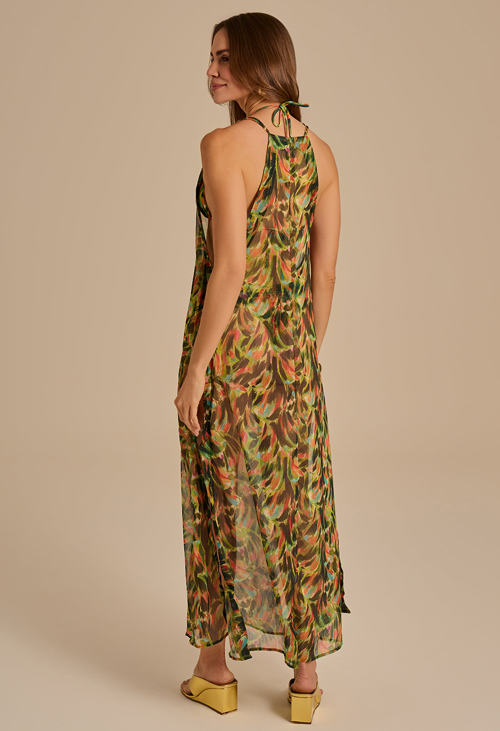 +A Saída Tribeca apresenta modelagem clássica e fluida, com caimento que valoriza a silhueta feminina. Possui abertura lateral com fechamento em botões, que adiciona charme e um toque descontraído ao visual. Uma peça versátil, perfeita para compor produções elegantes e leves no beachwear. Todos os detalhes dourados são banhados a ouro.