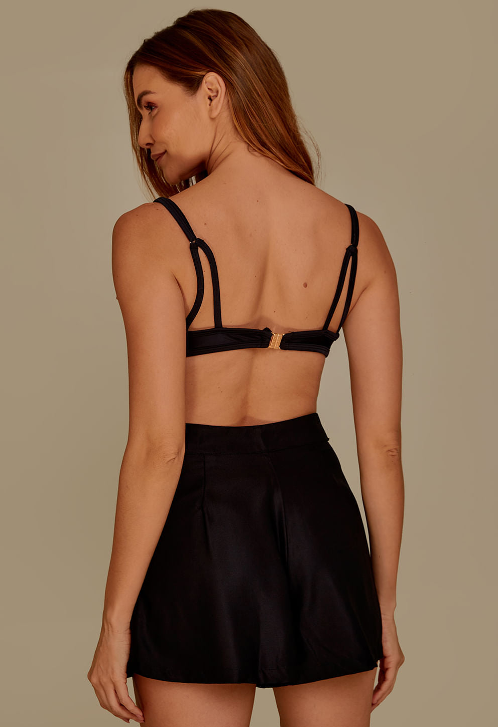 +Short preto de modelagem minimalista com cós clássico e fechamento lateral por zíper. Versátil, com ótimo caimento, ideal para looks casuais e ocasĩı