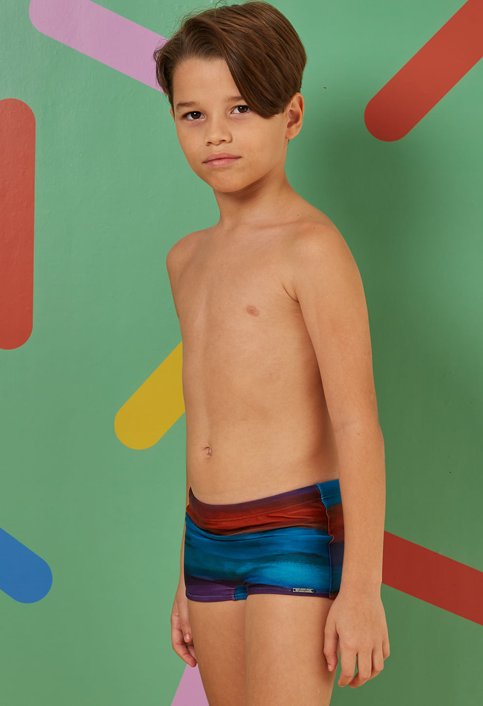 +Sunga short infantil listrada com tecido resistente, cadarço interno para ajuste seguro e proteção solar FPU 50+. Conforto e liberdade de movimento, a