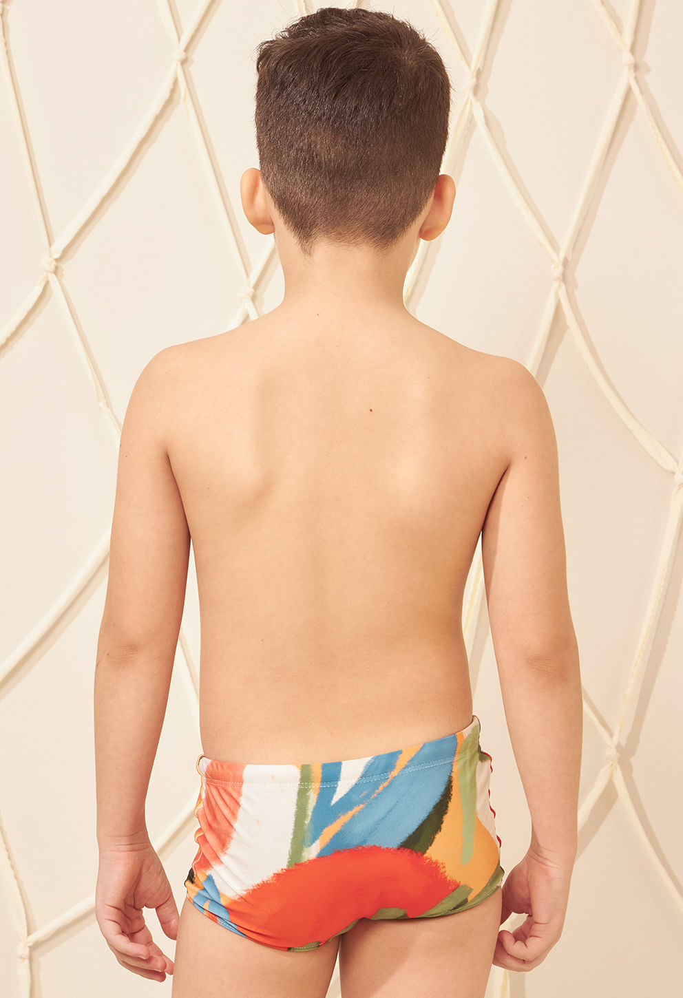 +Sunga short infantil com modelagem confortável, ajuste interno e tecido com proteção UV FPU 50+. Ideal para praia e piscina, com estampa vibrante que
