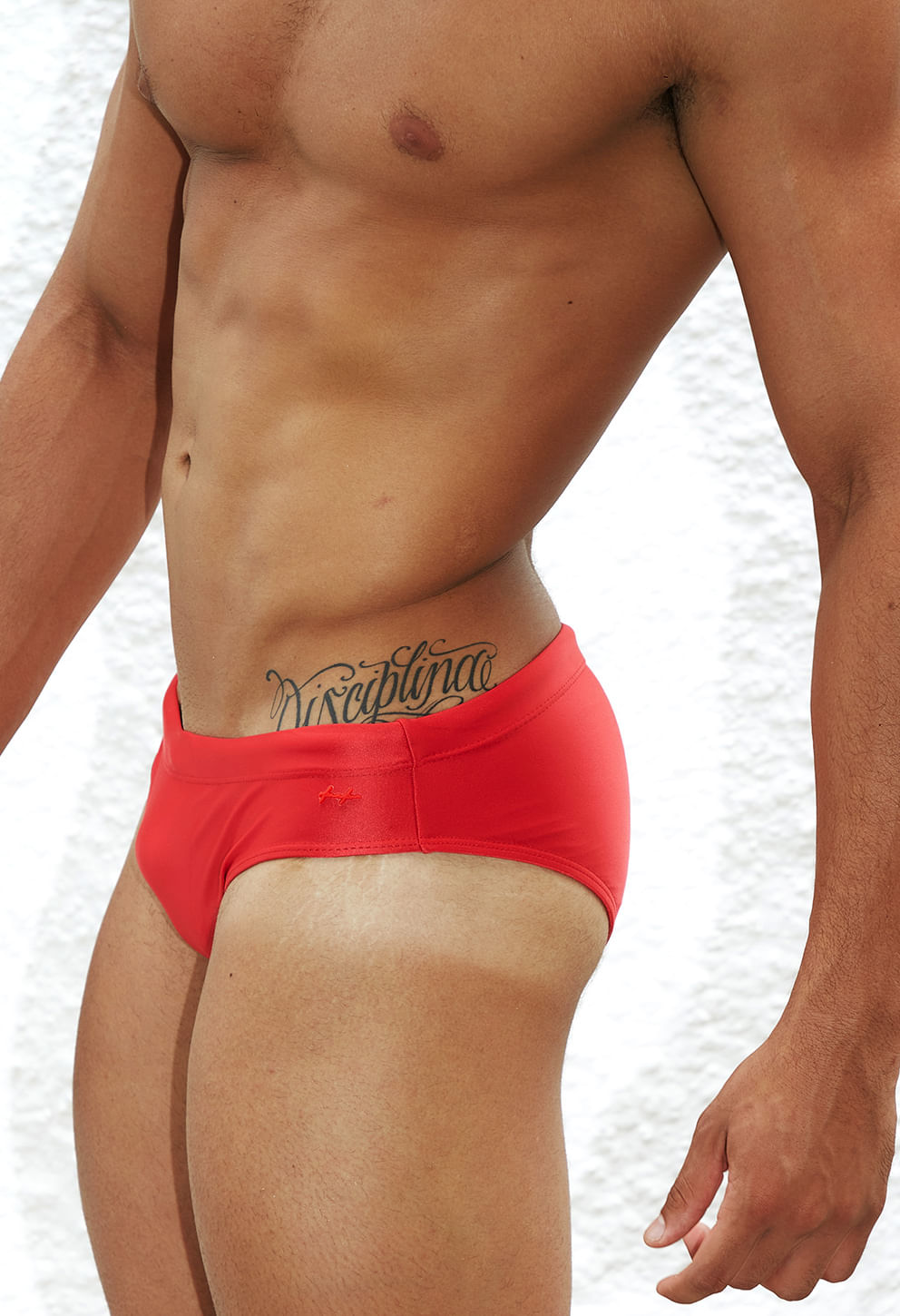 +Sunga slip adulto na vibrante cor carmim, ideal para quem busca conforto e estilo na moda praia. Com modelagem clássica e acabamento de qualidade, é a
