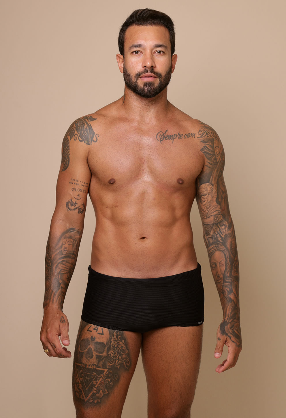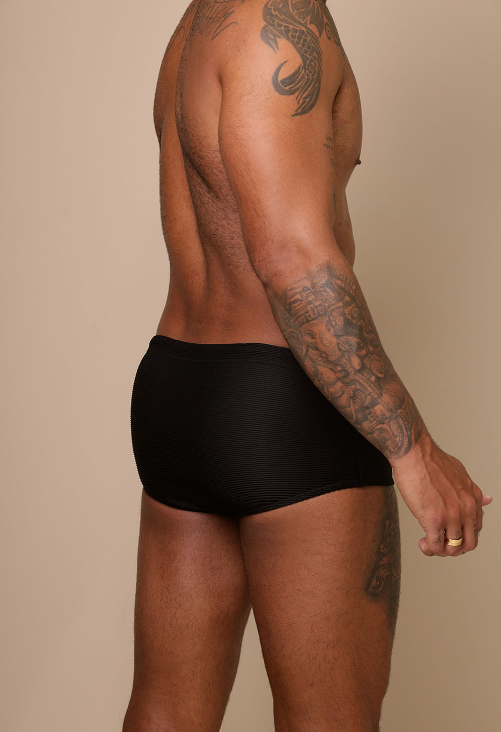 Sungão levemente mais curto para liberdade de movimento.