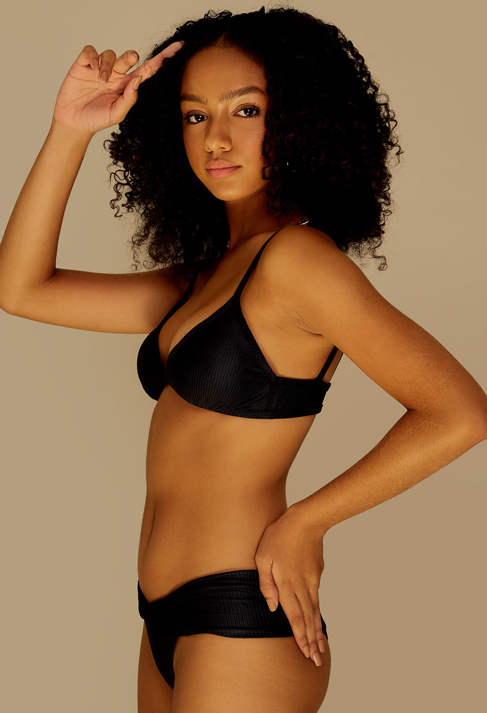 +Top fixo em tecido canelado com bojo removível e alças reguláveis, que oferece sustentação e conforto para aproveitar o dia de sol com estilo e pratic