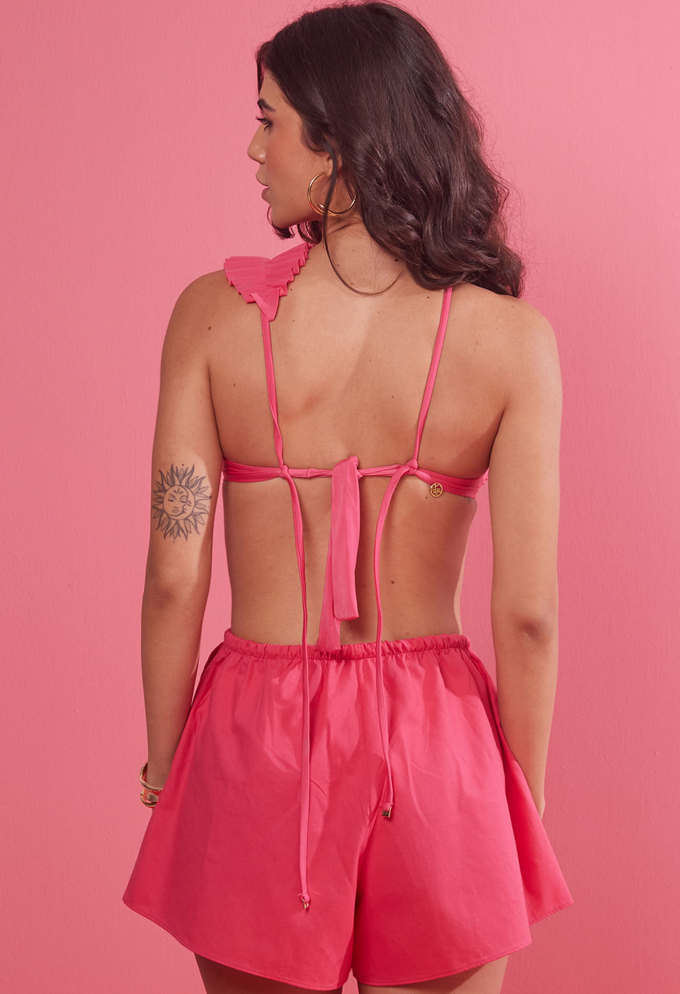 +Top tomara que caia meia-taça com bojo removível, alça de amarrar opcional e folha decorativa removível para múltiplas formas de uso. Ideal para quem,