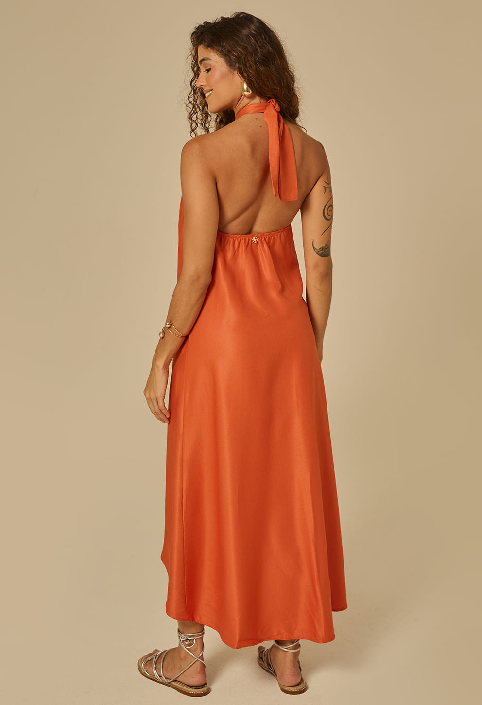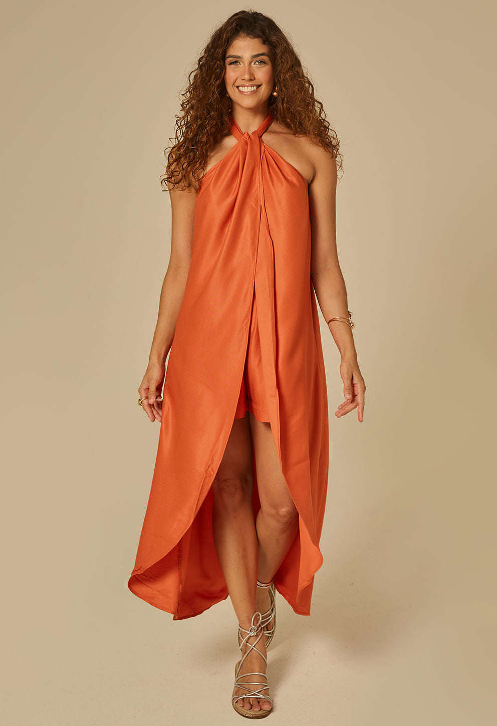 Túnica em tom laranja sunset que destaca seu estilo com vivacidade.