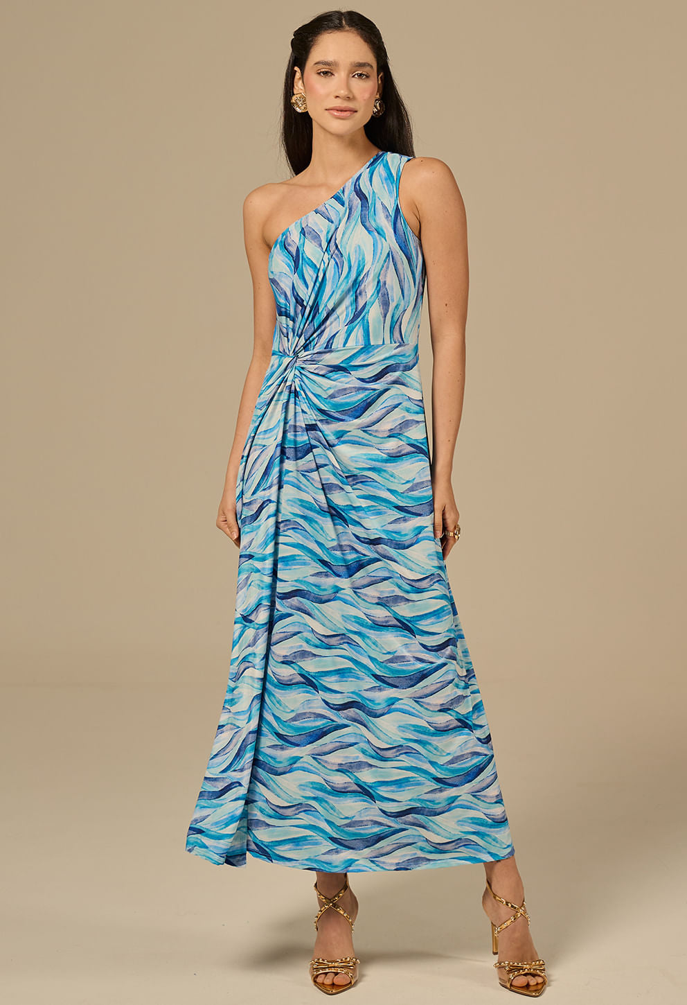 +Vestido Lady Orla longuete com modelagem de um ombro só, drapeado frontal e fenda que valorizam a silhueta. Confeccionado em microfibra macia com avi—